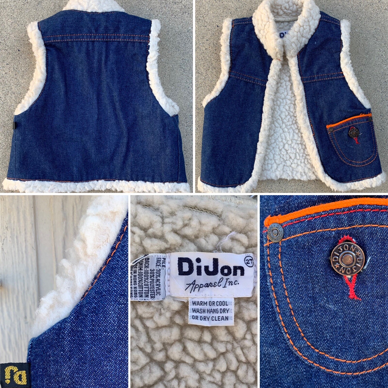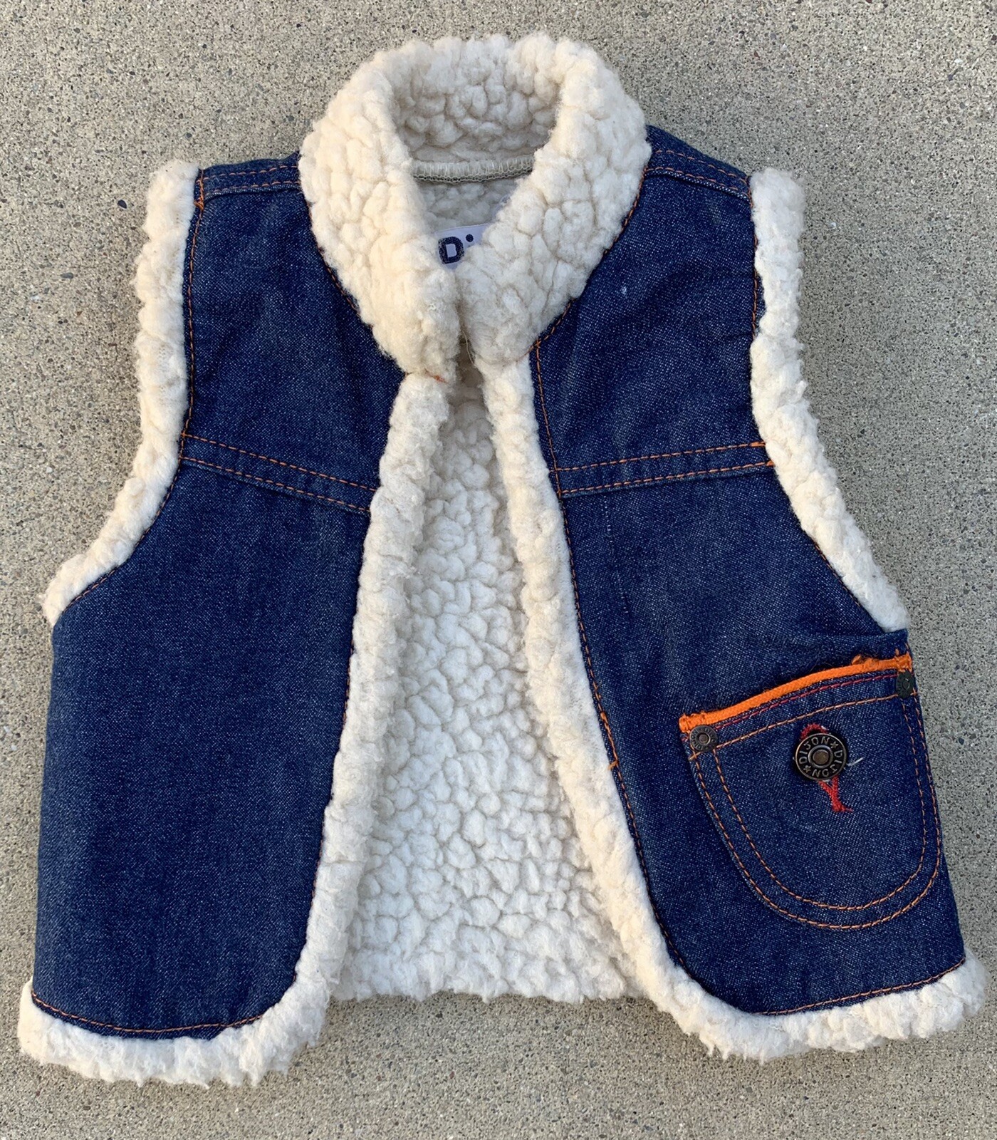 vintage denim vest cotton sherpa lined DiJon Apparel Inc hippy western size 2T