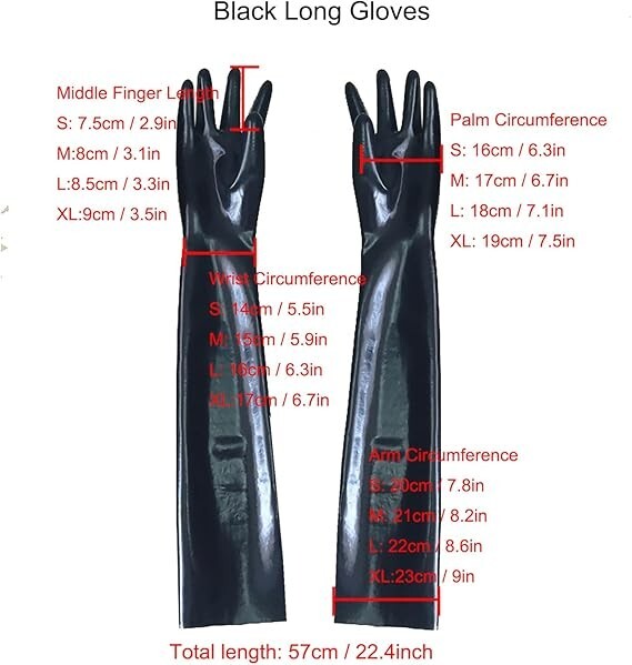 Black Latex Long Gloves for Women Men,Natural Rubber Gloves Suitable for cosplay