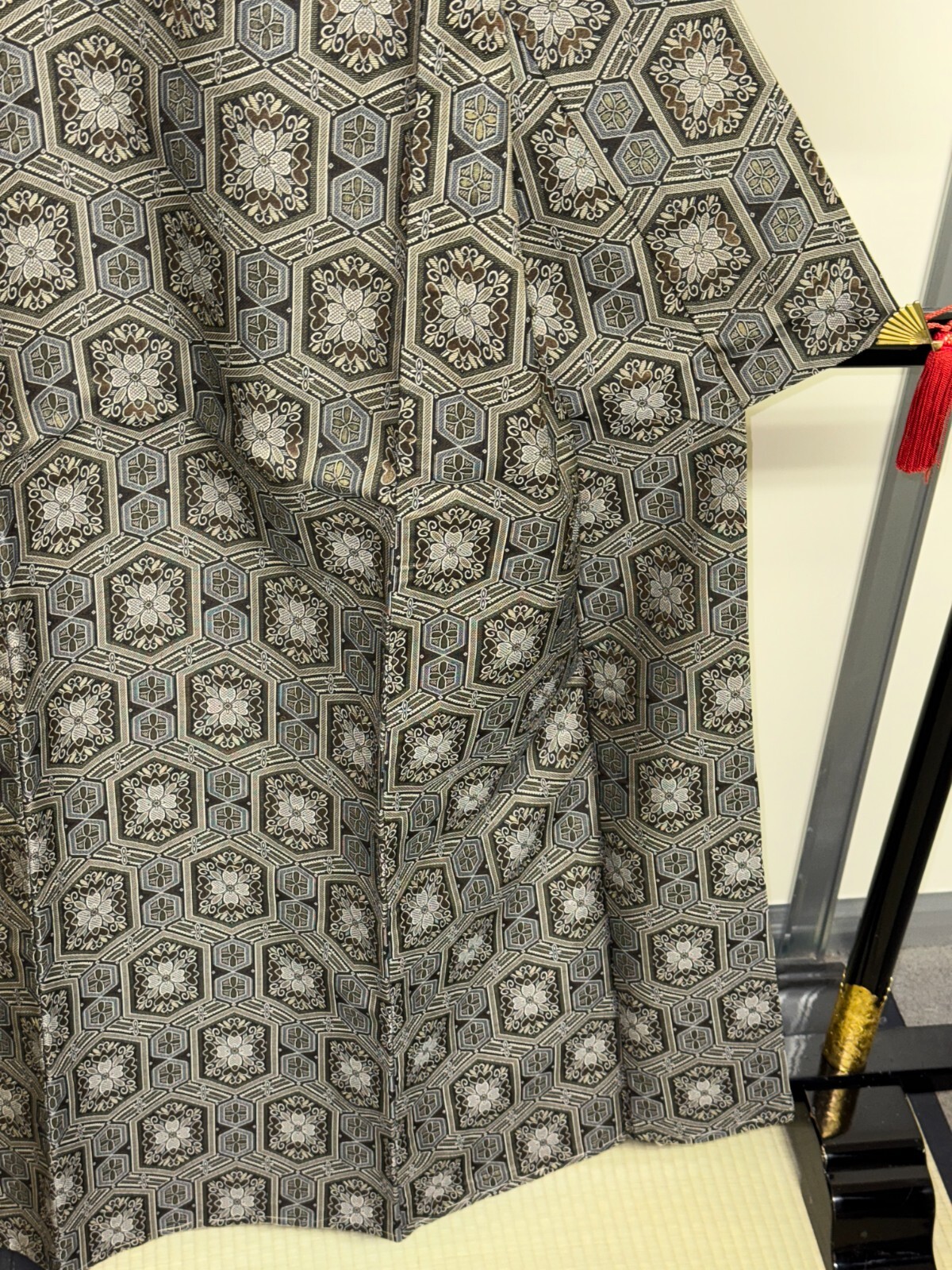 как выглядит Japanese Vintage Kimono Silk Grey Tsumugi expensive Tradition Height 61.41in фото