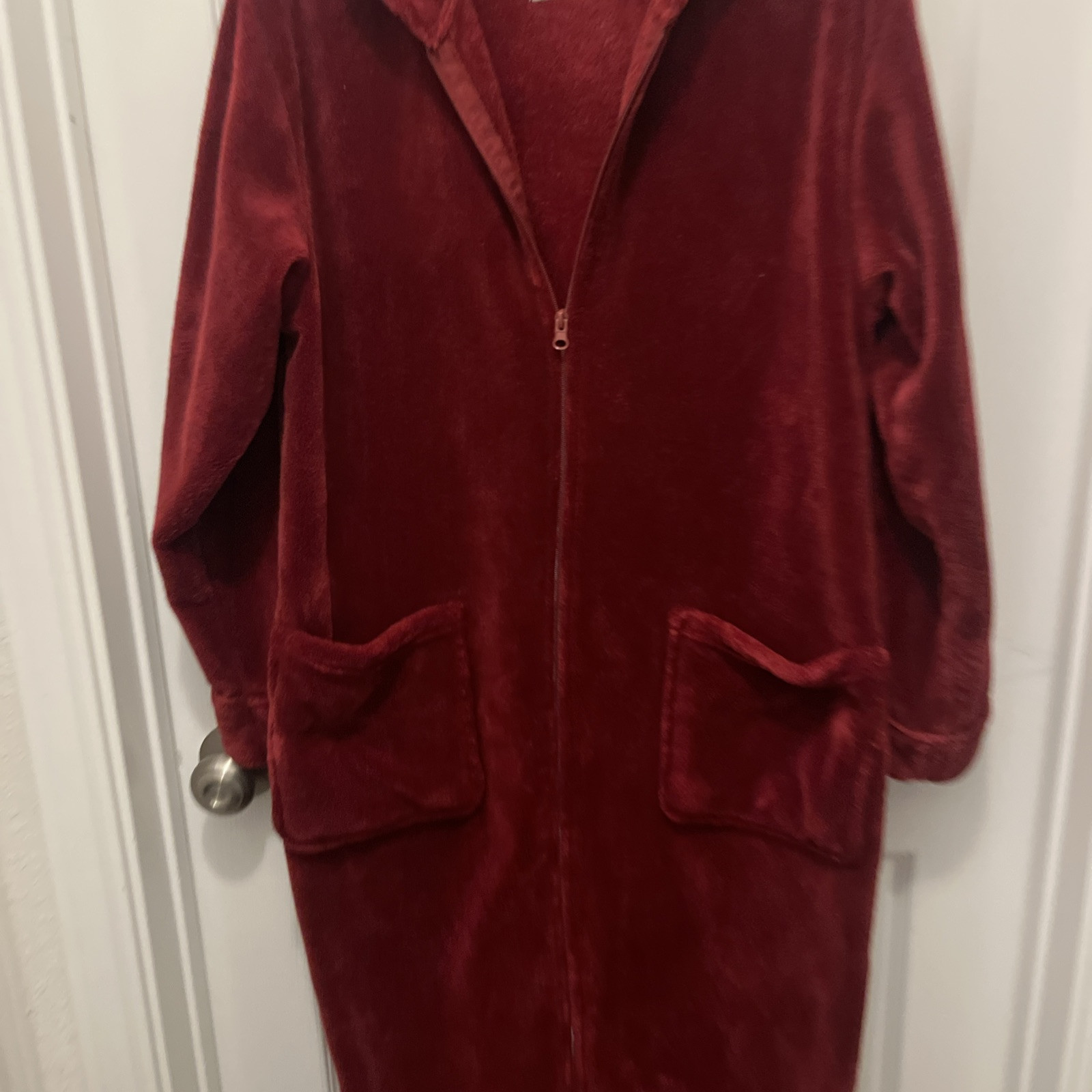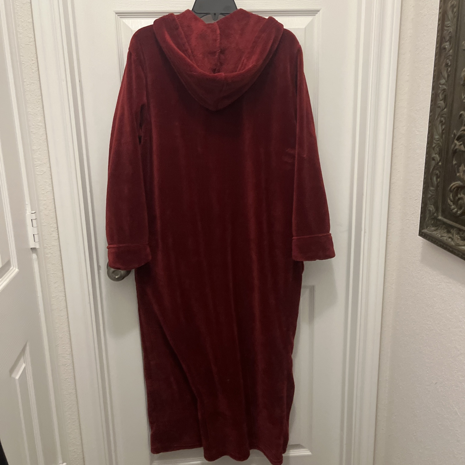 как выглядит Alexander Del Rossa Plush Womens Robe Wine Hooded Plush Floor Length Zip O фото