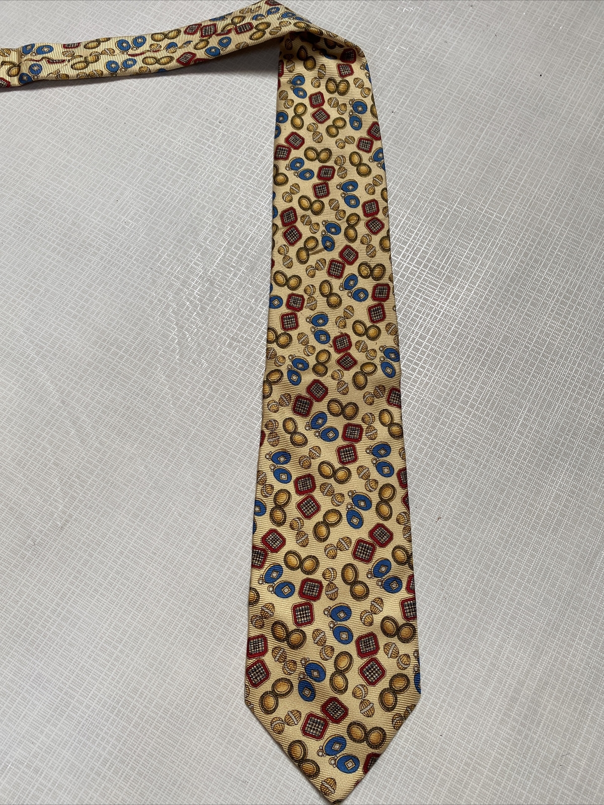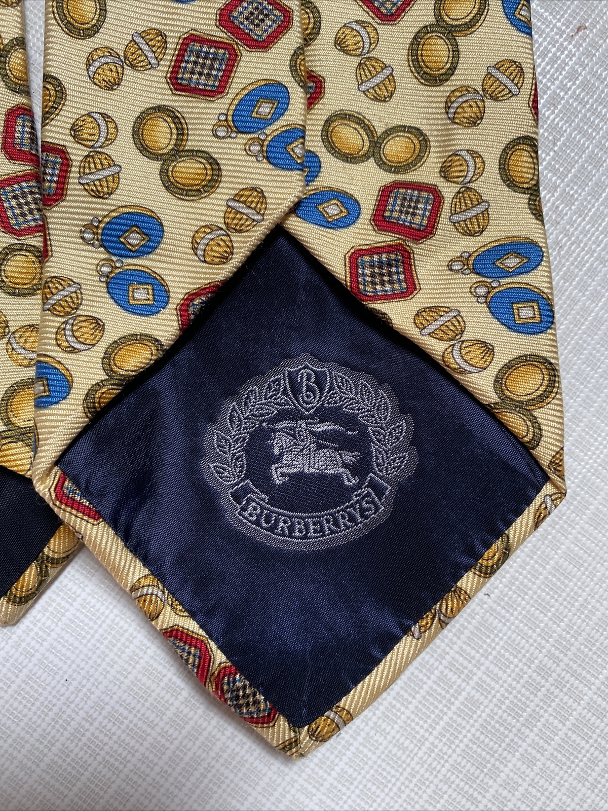 как выглядит BURBERRYS OF LONDON VINTAGE YELLOW GOLD WITH PRINT 100 SILK TIE MADE IN ITALY фото