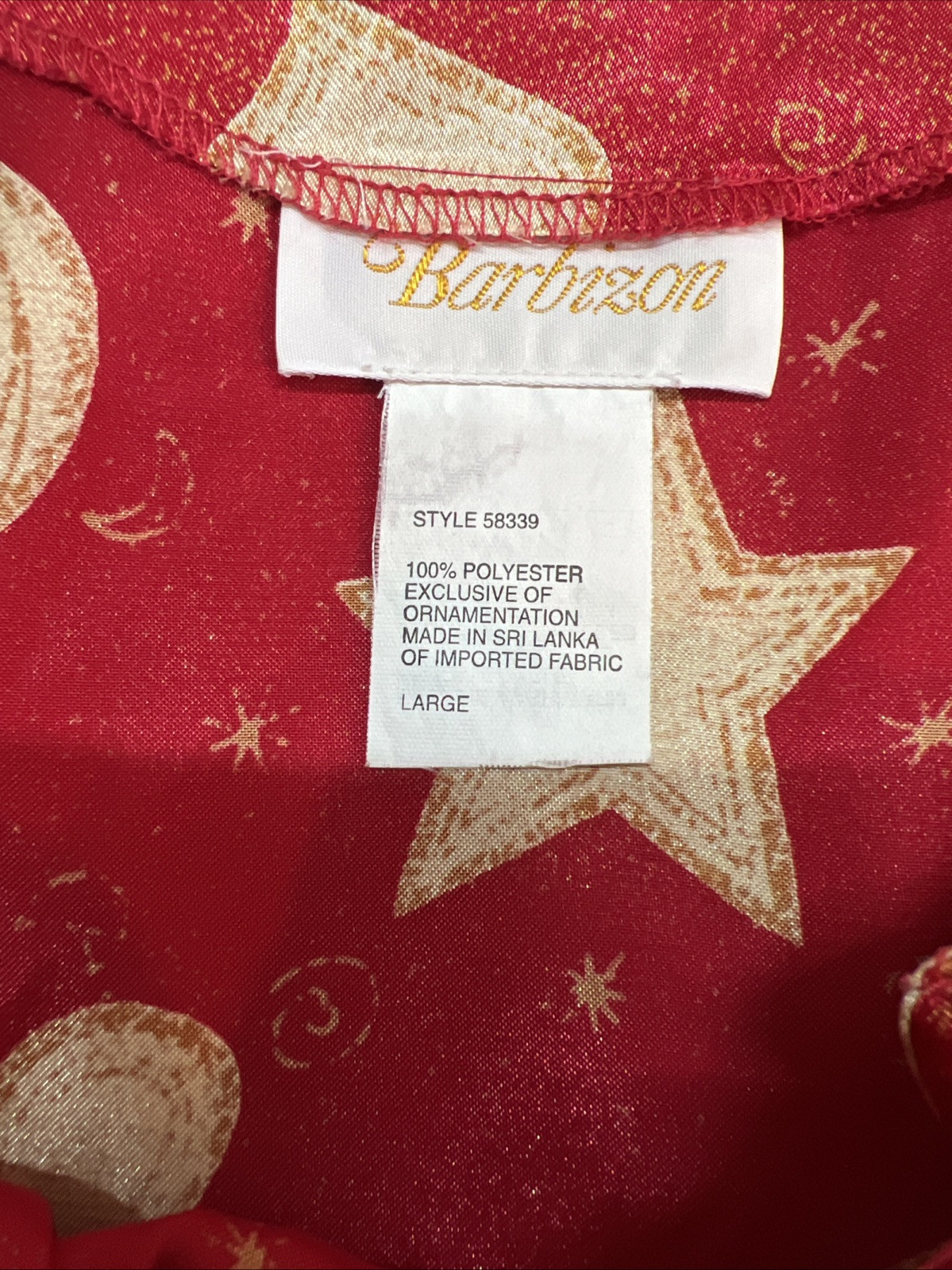 VTG Barbizon Red Satin Sleeveles Nightgown W/Button Details Moons Stars Large