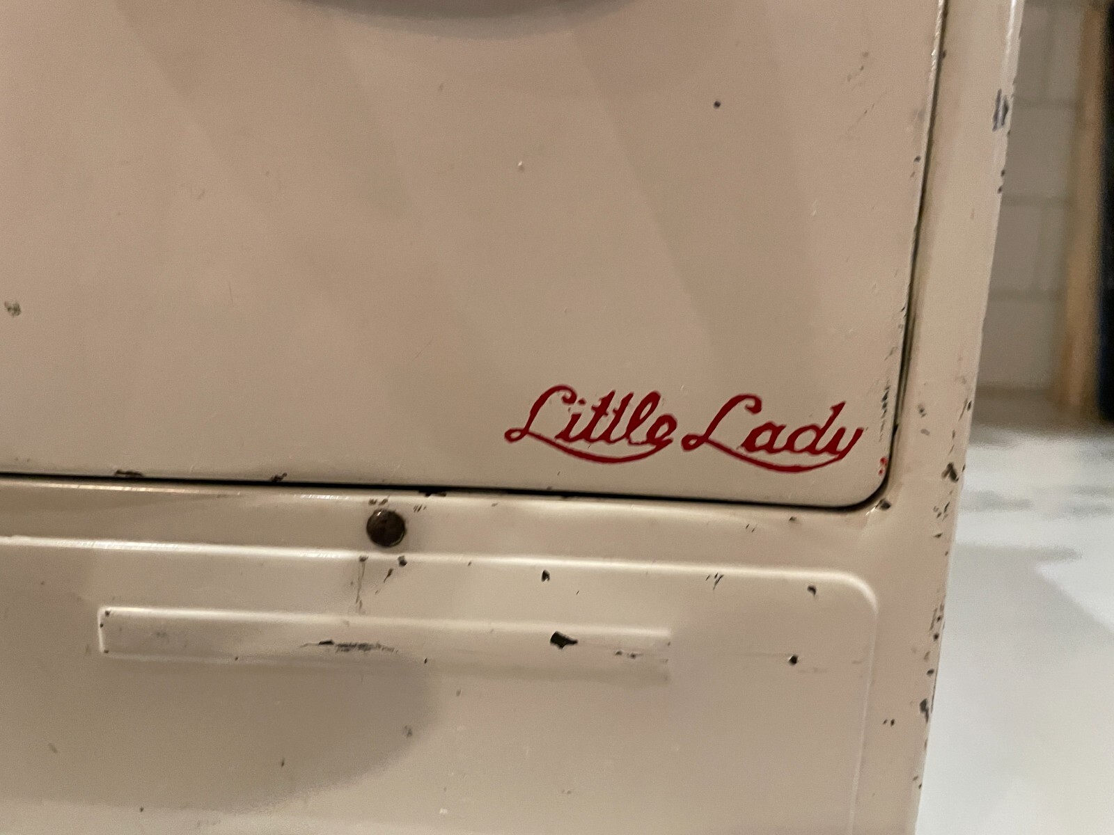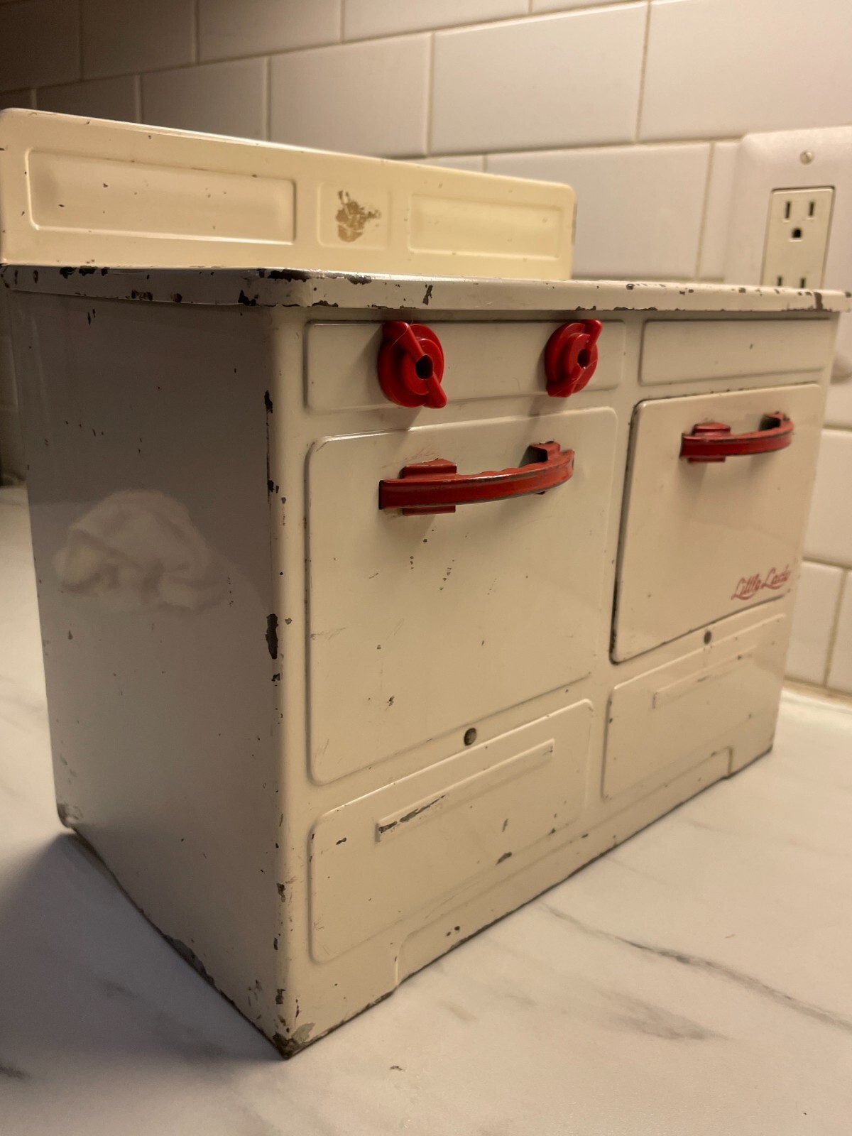 VTG Metal Tin Empire 226 Little Lady Cooking Stove Toy white red 1960s no cord