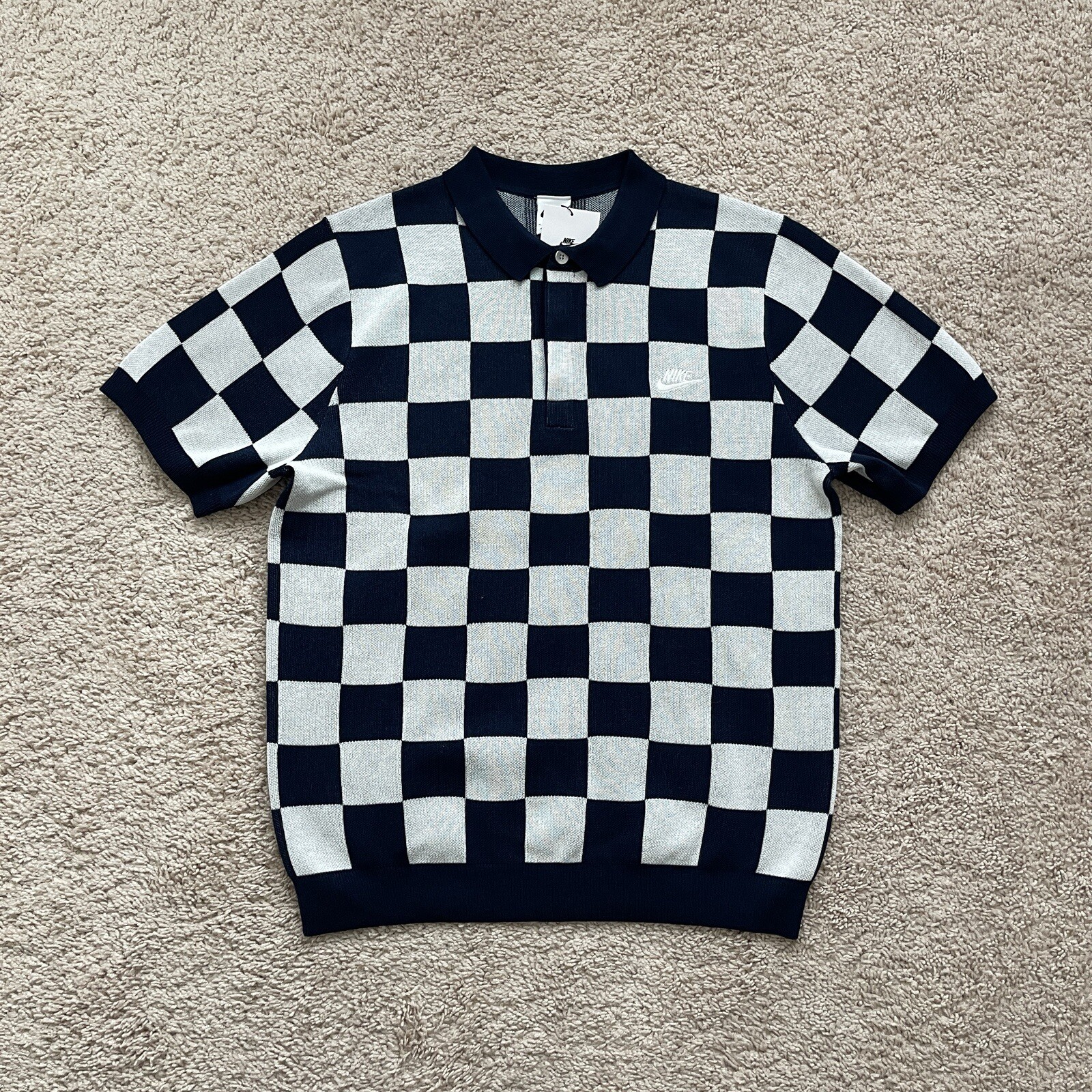 Nike Sportswear Club Checkers Polo Midnight Navy White Size Medium FN3422-410