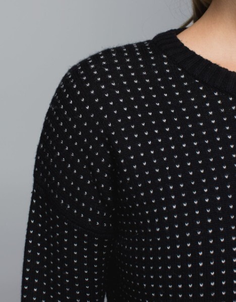 Lululemon Yogi Crew Sweater Zips Size 6 Black White Polka Dotted Merino Wool