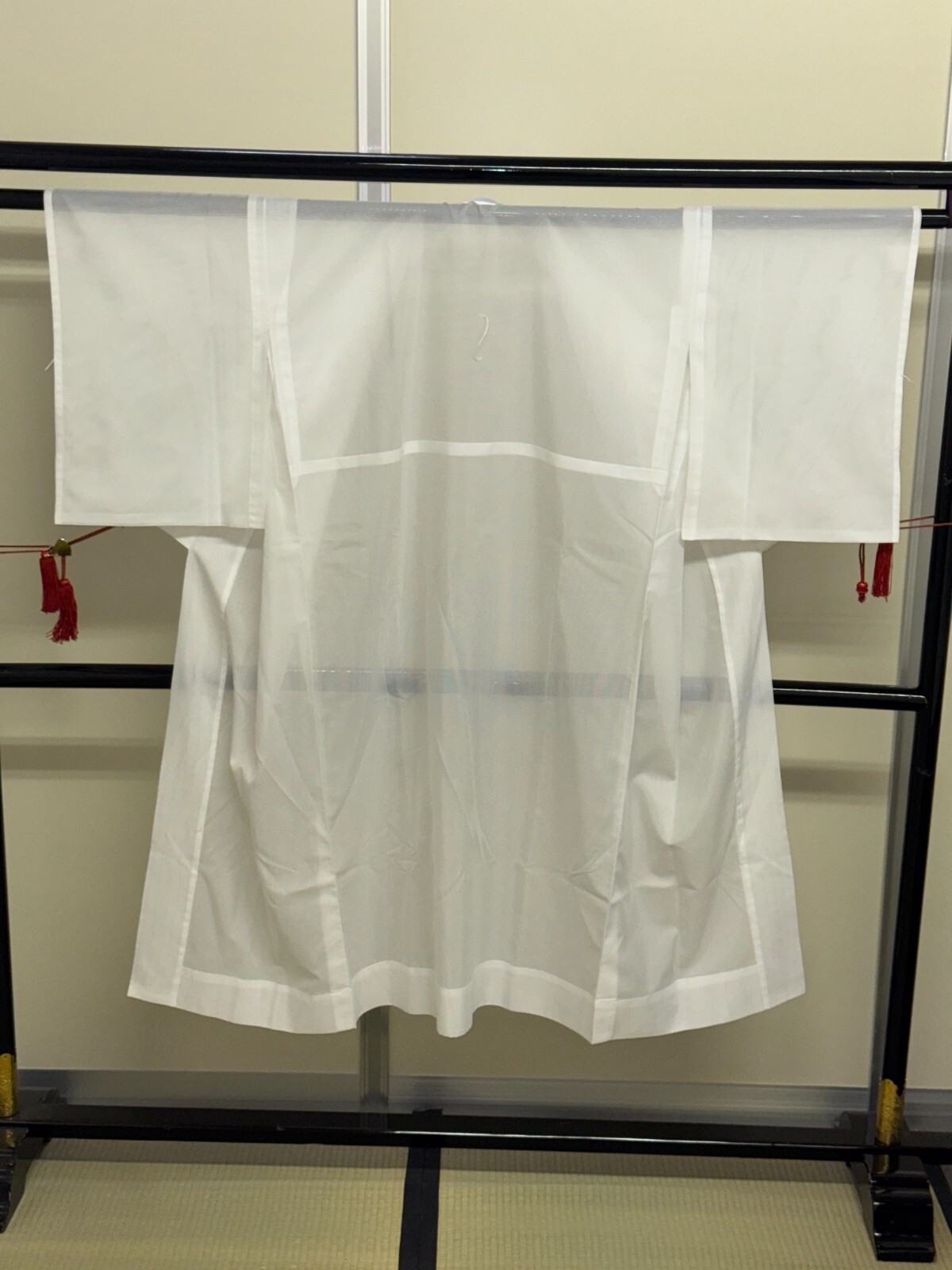 как выглядит Japanese Vintage Kimono Polyester White Juban Tradition Seethrough Height 51in фото