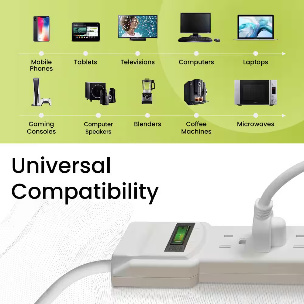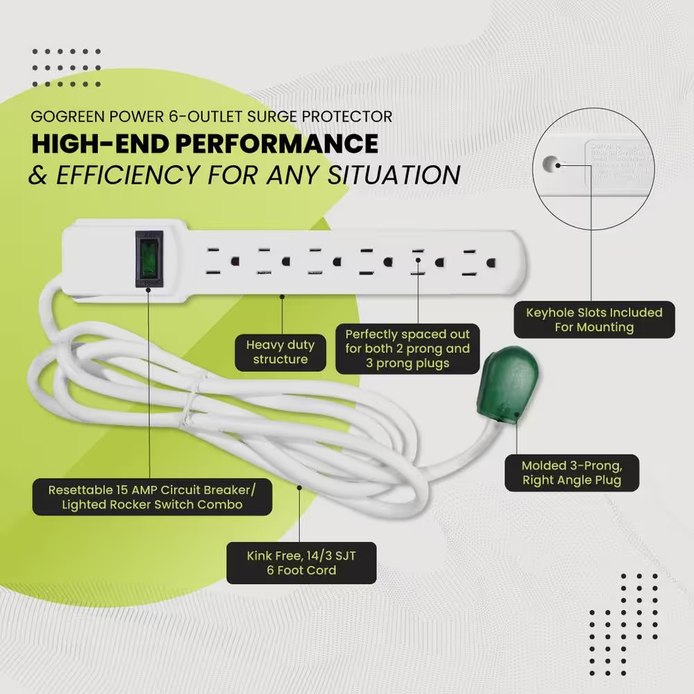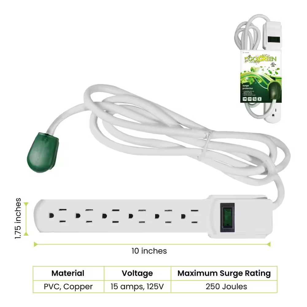 6 Outlet Surge Protector with 6 ft. Heavy Duty Cord - White