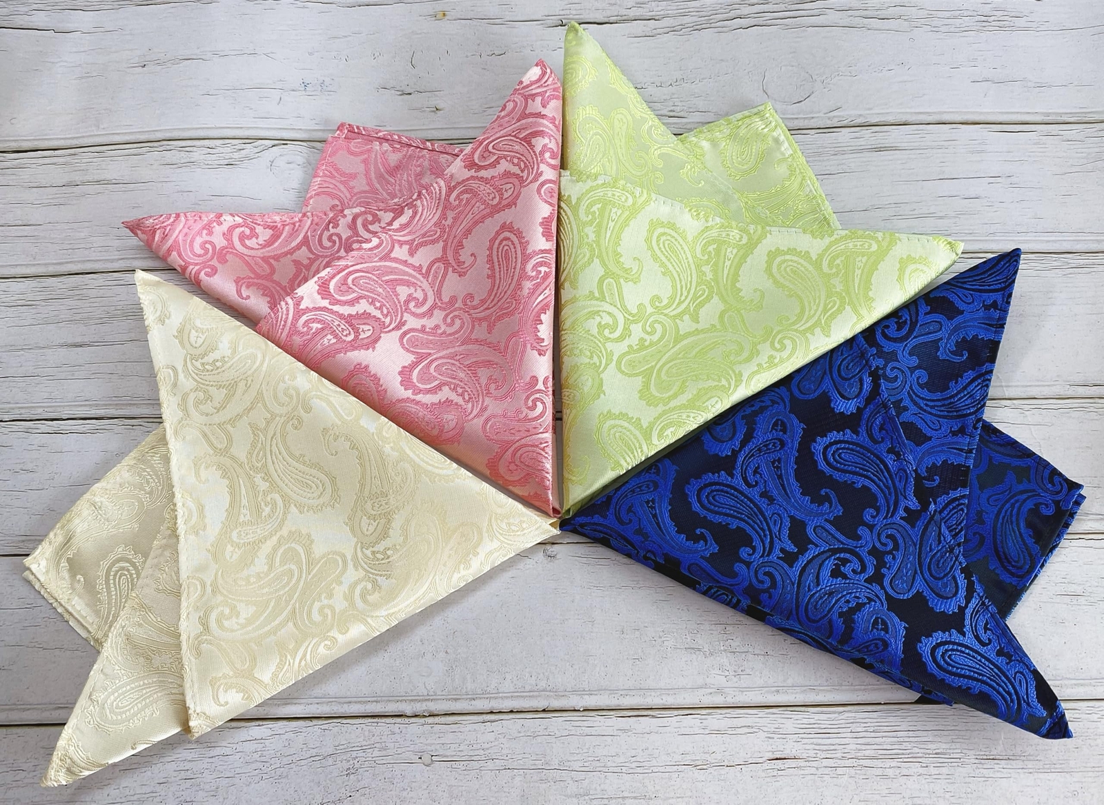 Mens Light Green Paisley Pocket Square Hanky Handkerchief