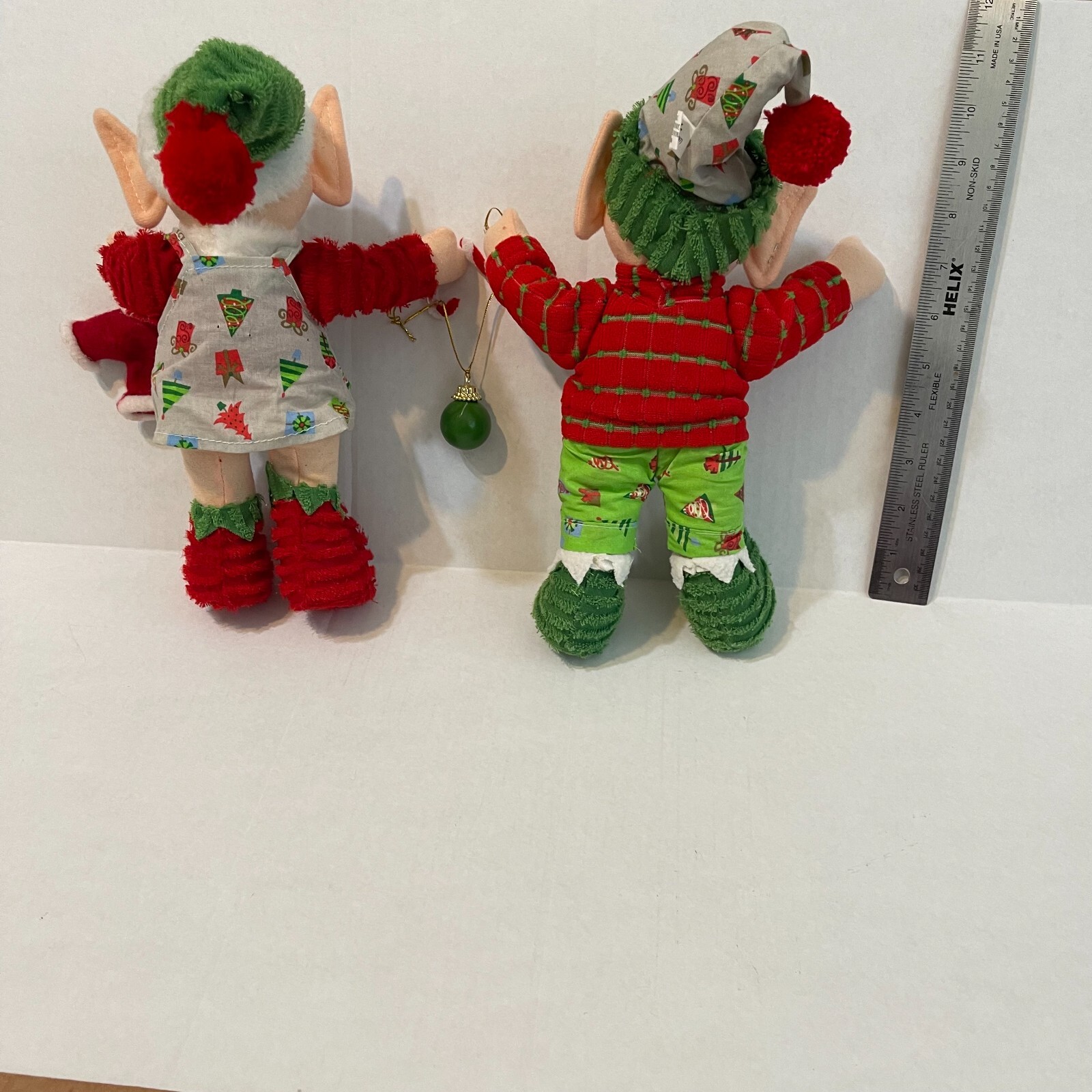 как выглядит Vintage Christmas 13" Plush Elf Shelf Sitters Boy Girl Figurine фото