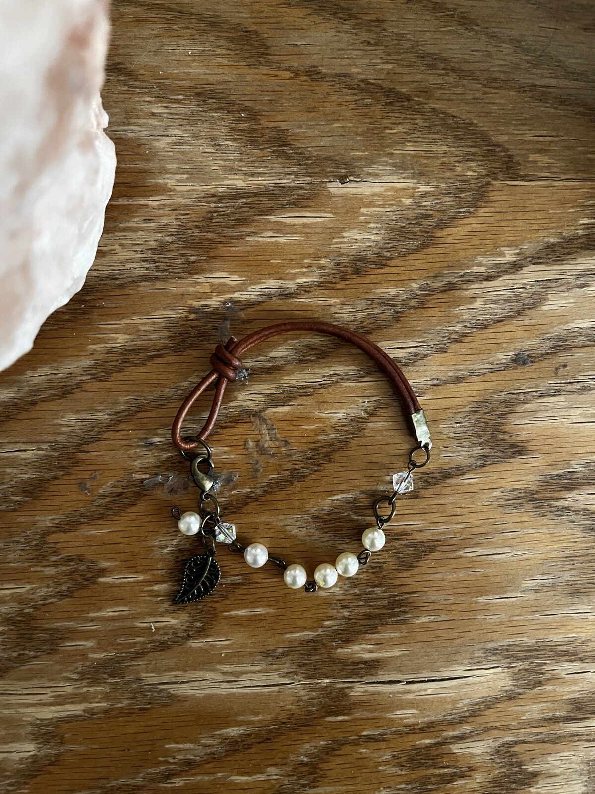 Handcrafted Swarovski Pearl/Crystal Leather Bracelet Made USA Free Ship/On Sale