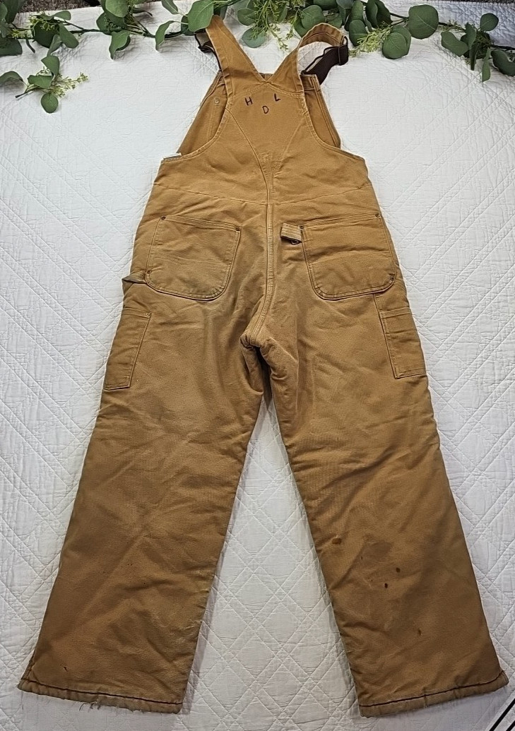 VTG Carhartt Men's Double Knee Lined Khaki Overalls Size 34 x 30 Made in USA