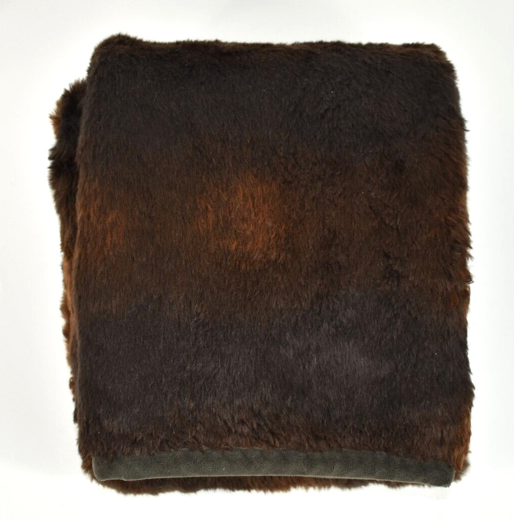 Pottery Barn Heavy Plush Brown Bear Faux Fur Throw Blanket 50x60 Soft Cabin
