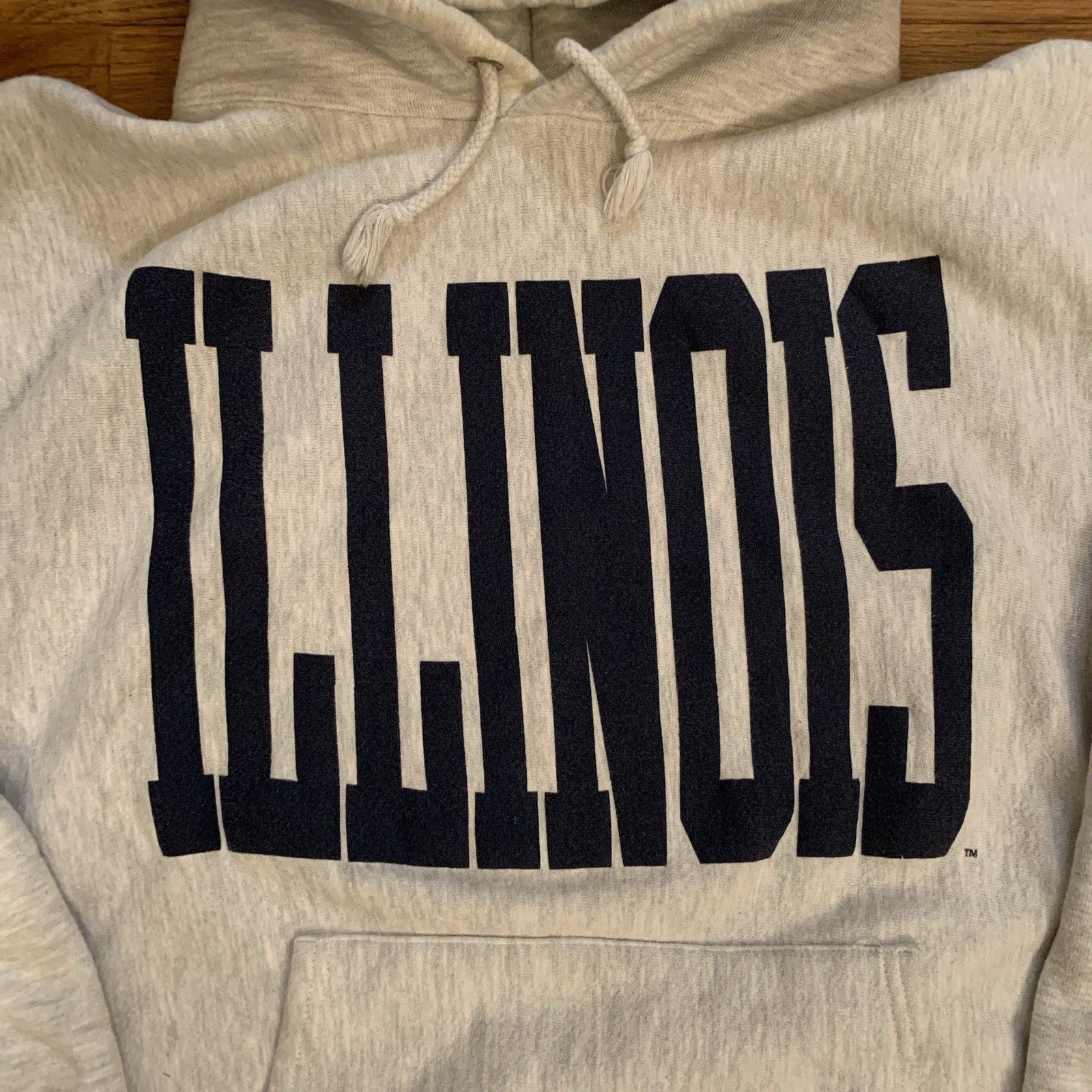 как выглядит Vtg Illinois Hoodie Pro Weave USA Sweatshirt Spell Out Script Block Logo Sz 2XL фото