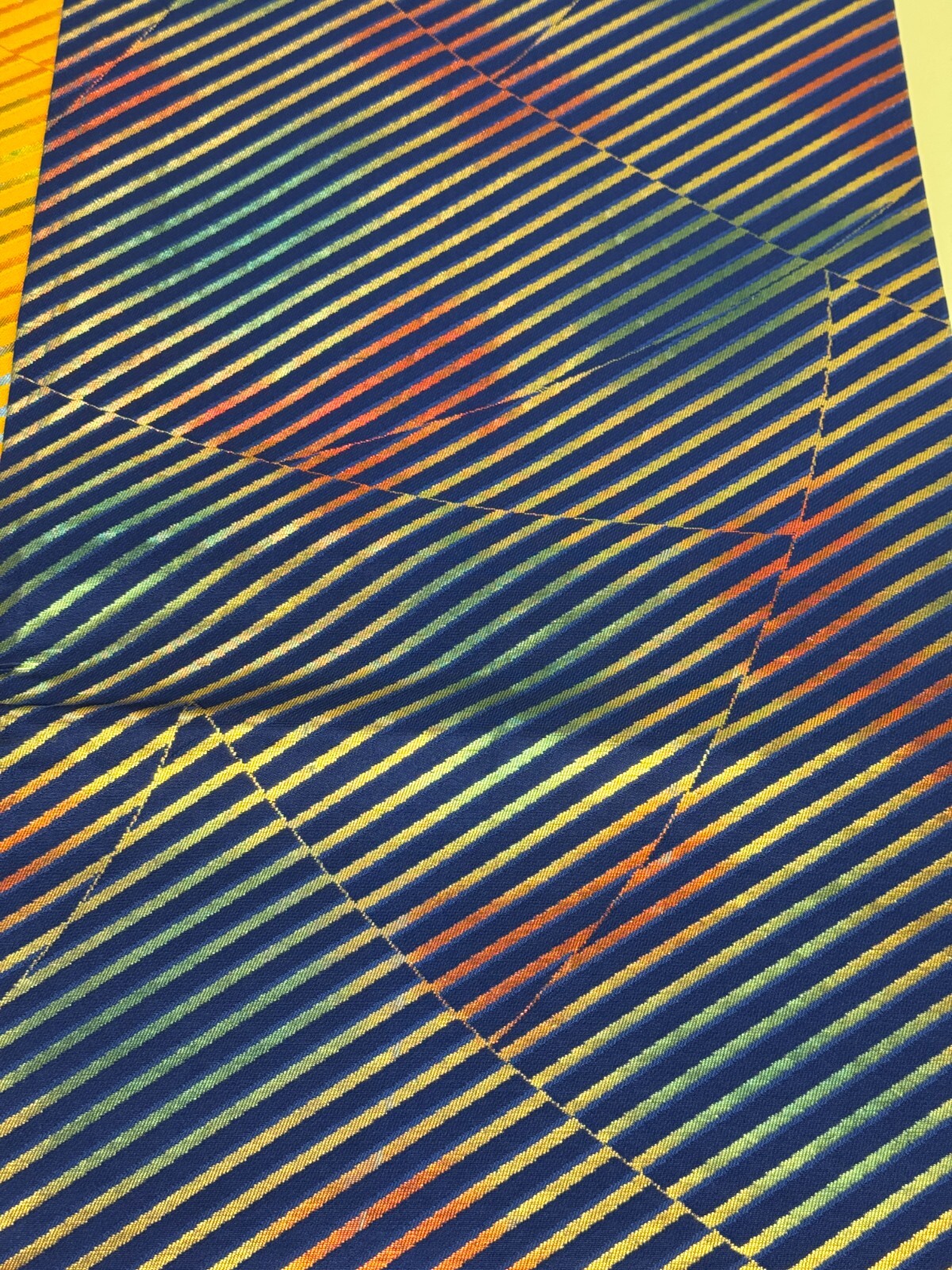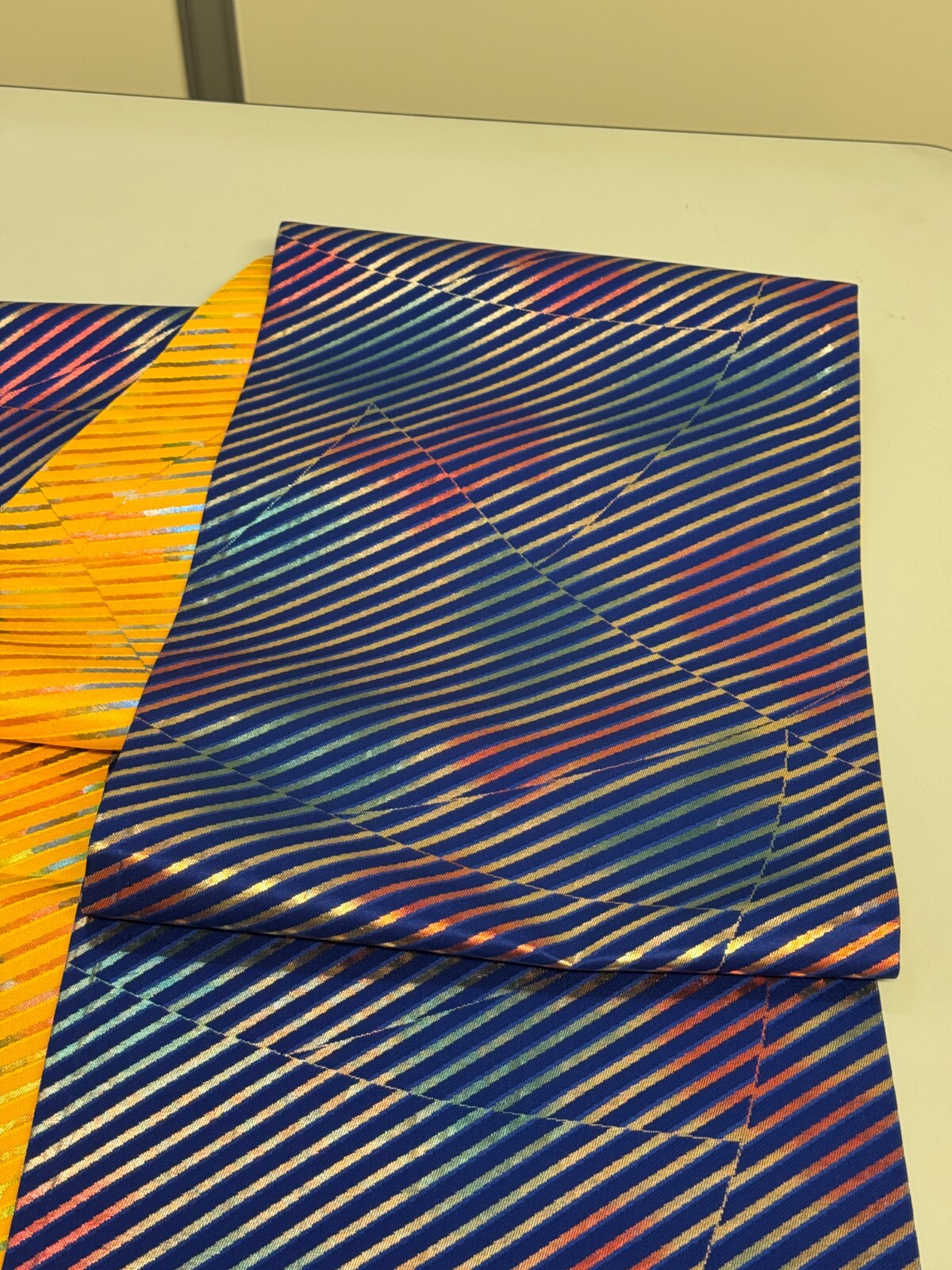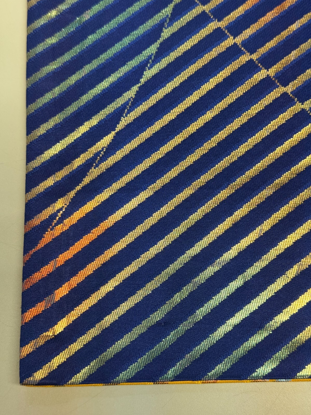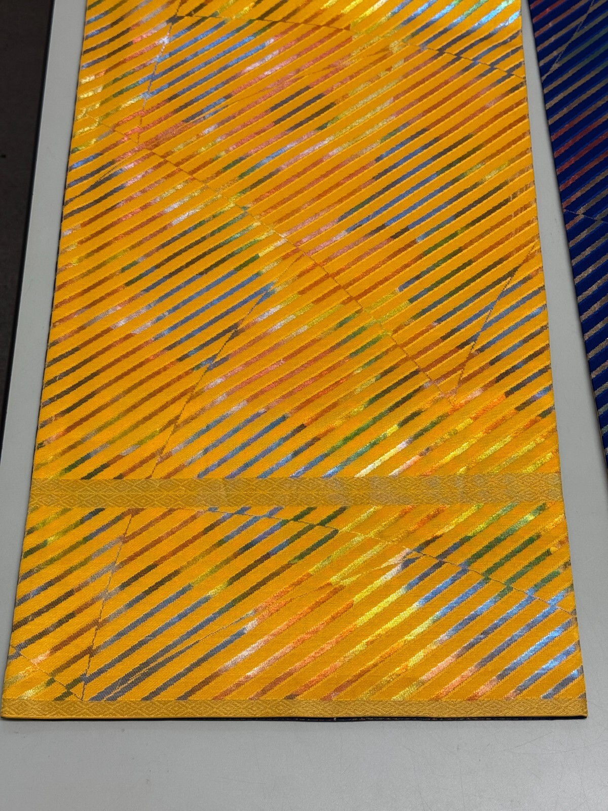 как выглядит Japanese Vintage Kimono Fukuro Obi silk blue yellow reversible expensive176x12in фото