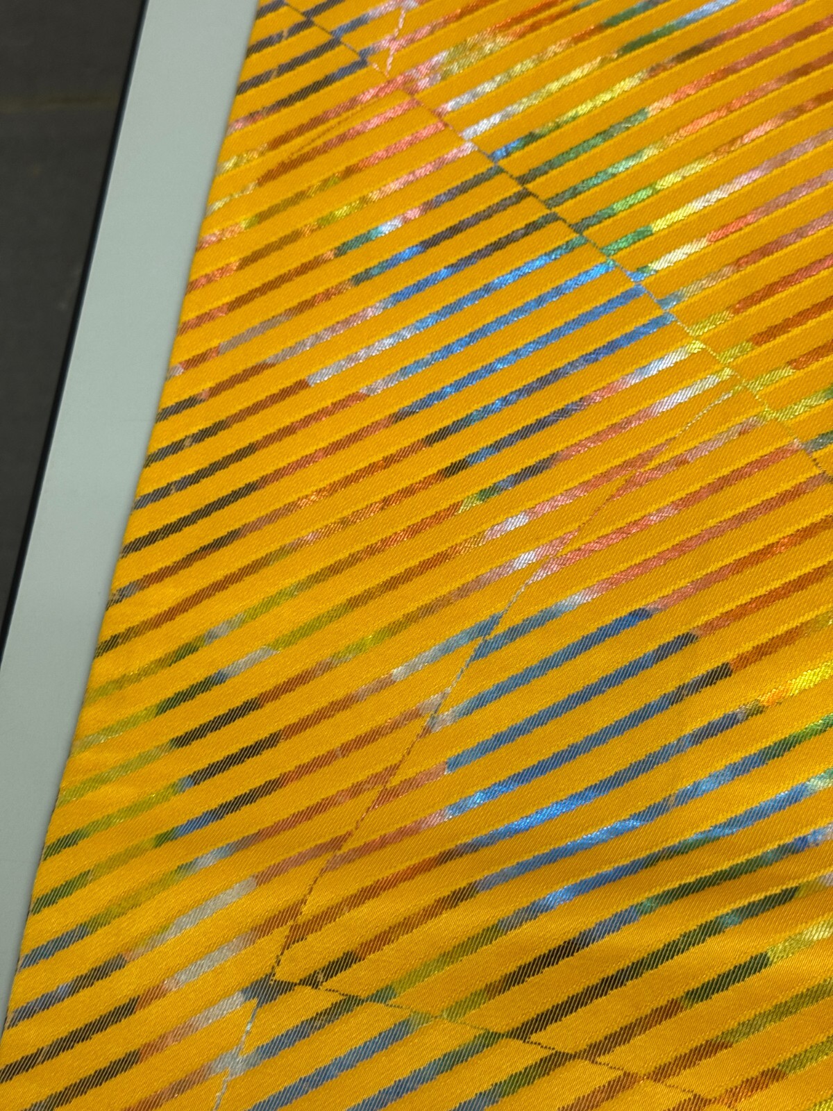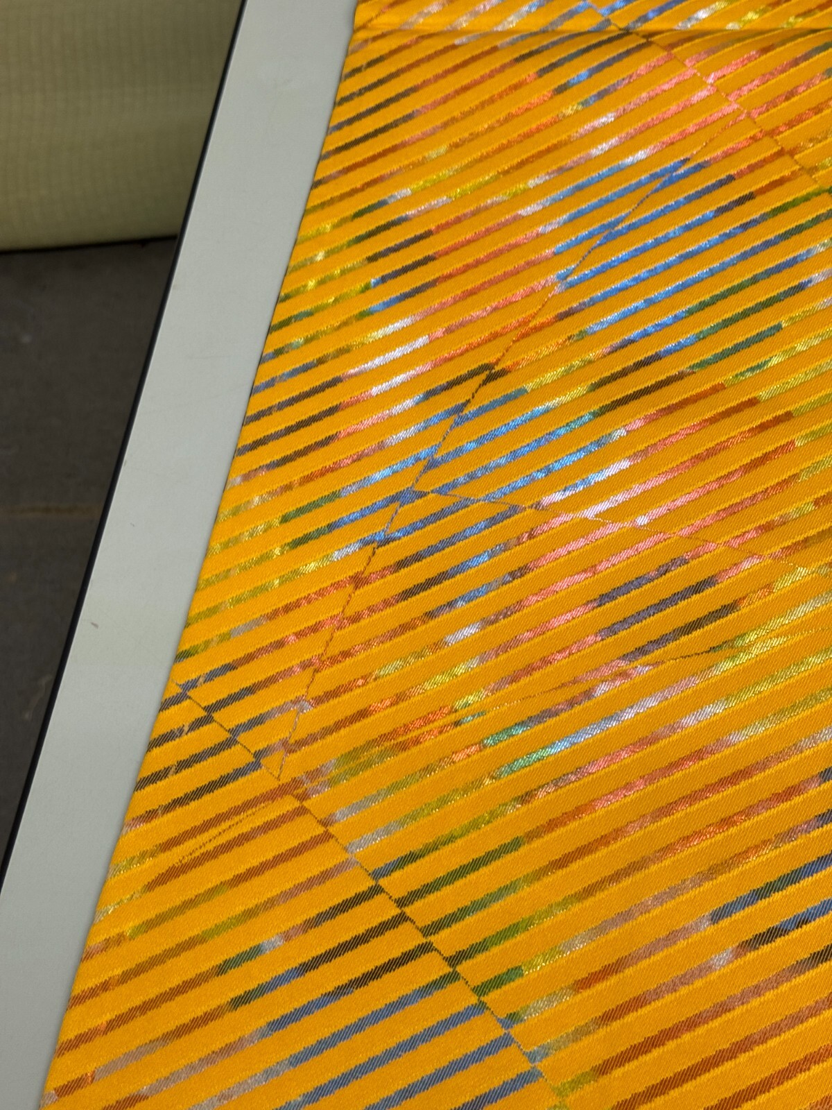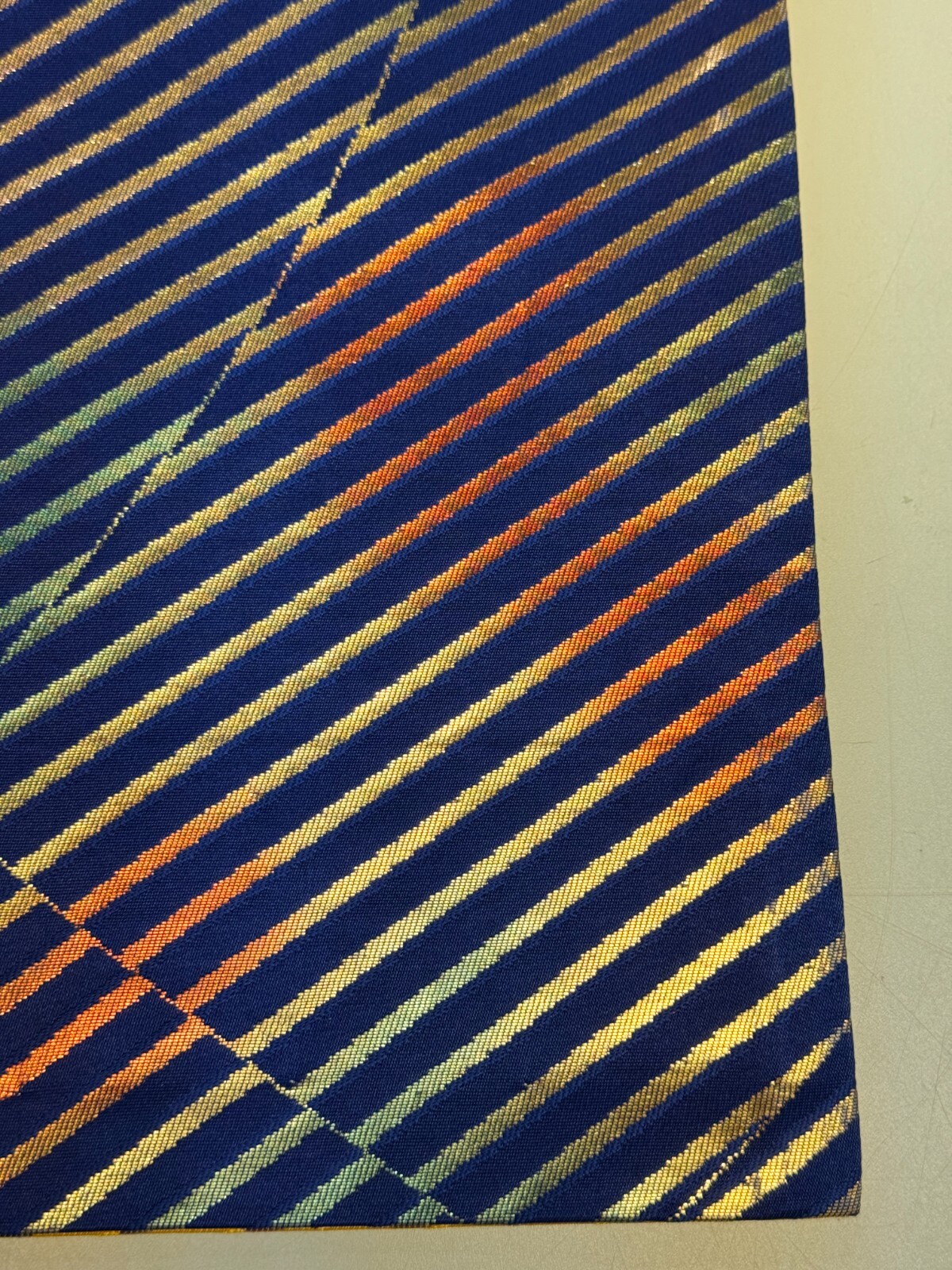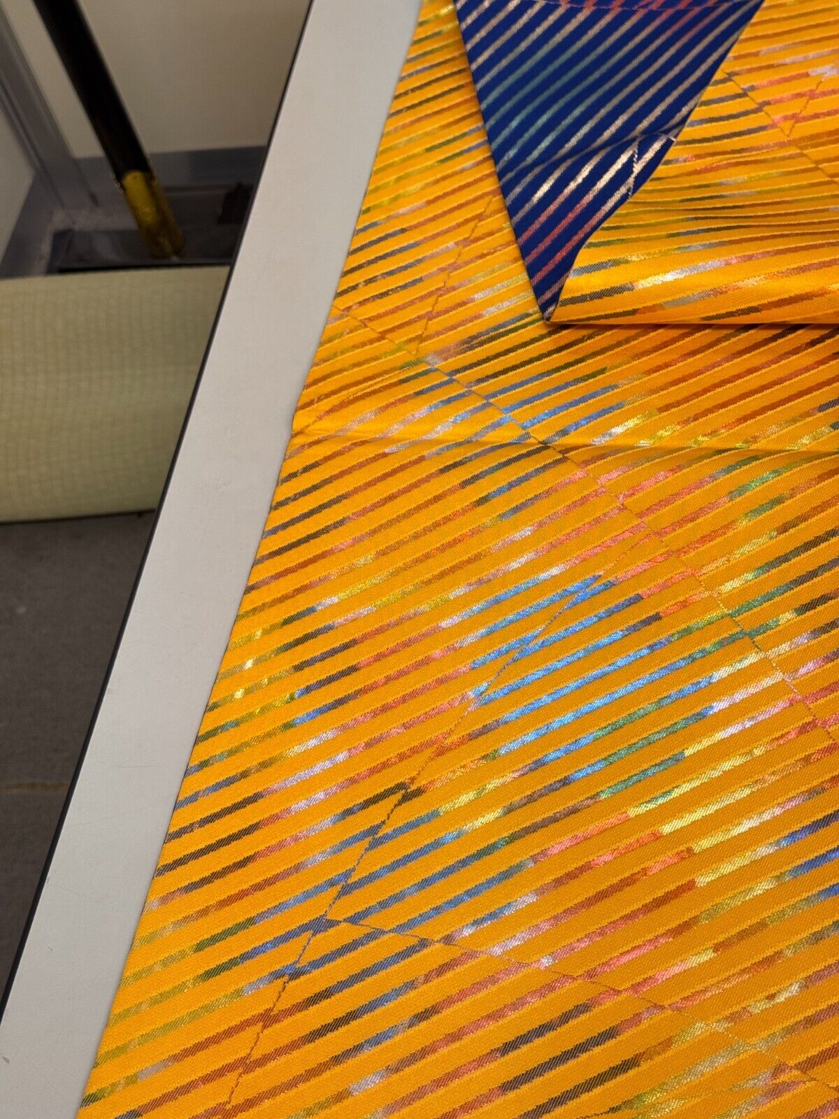 как выглядит Japanese Vintage Kimono Fukuro Obi silk blue yellow reversible expensive176x12in фото