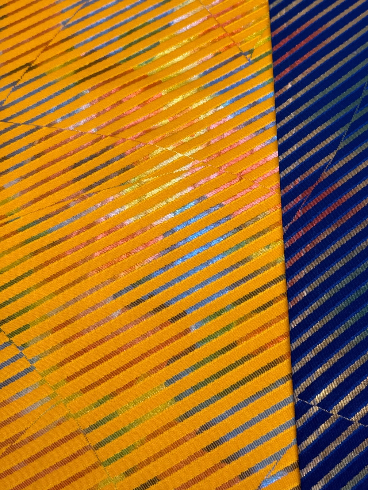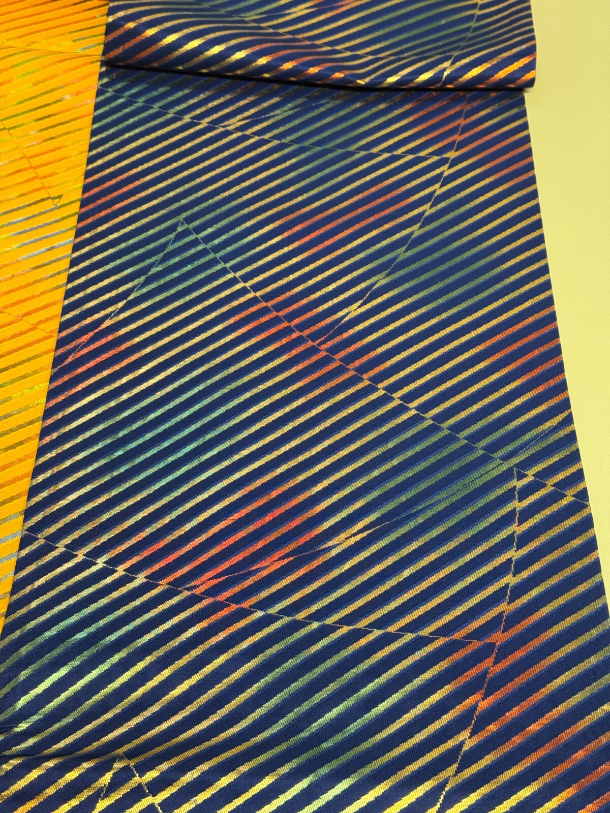 Japanese Vintage Kimono Fukuro Obi silk blue yellow reversible expensive176x12in
