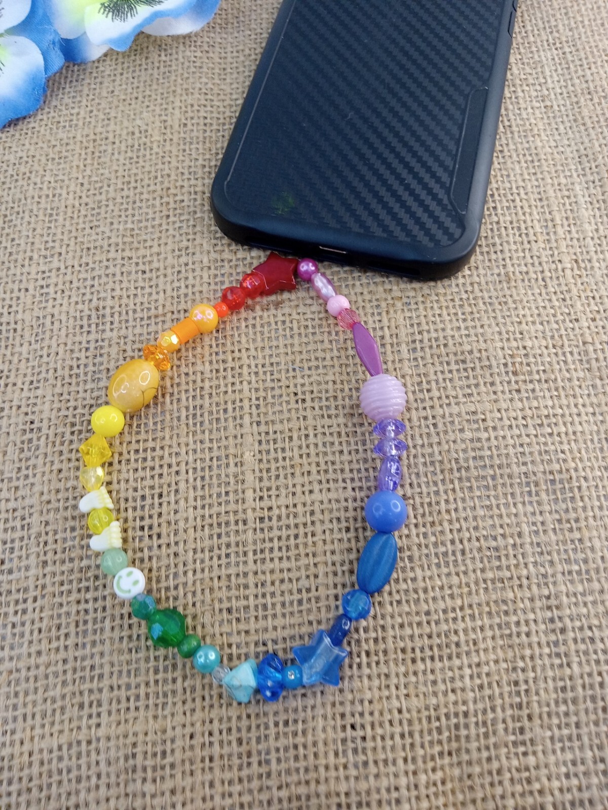 Phone Lanyard Charm Cute Rainbow Bead Accessory Charm Phone, Ear Pods, Tablet