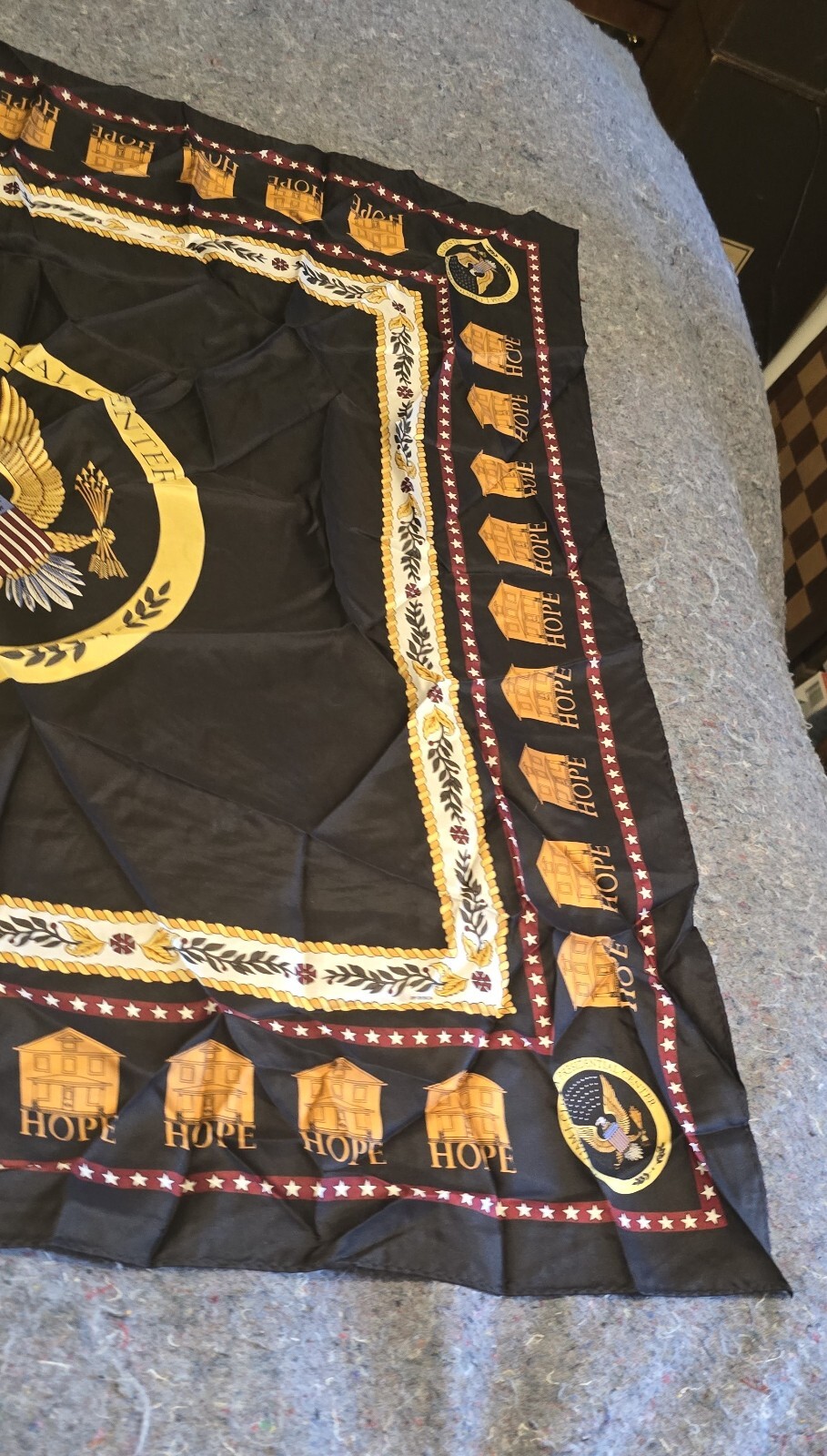 William J Clinton Presidential Center Scarf 100 silk black and a red scarf