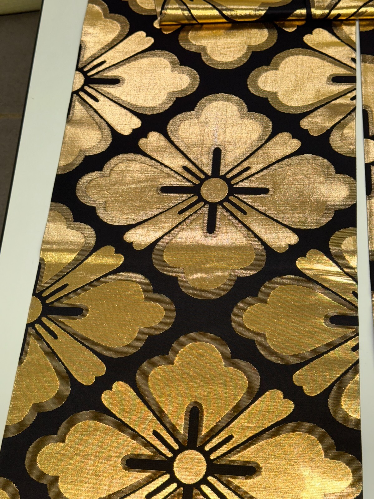 Japanese Vintage Kimono Maru Obi silk black reversible expensive 169.2x12.5in