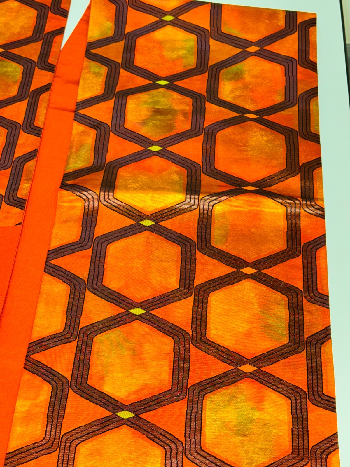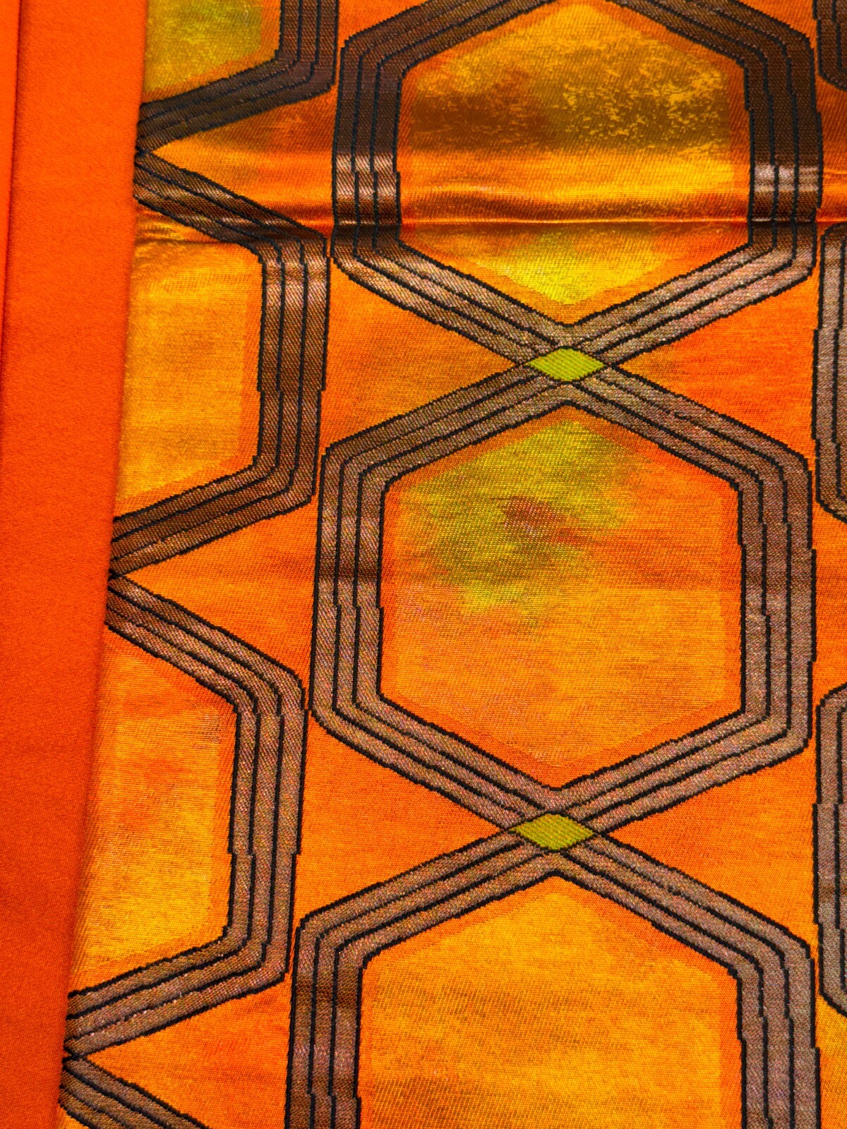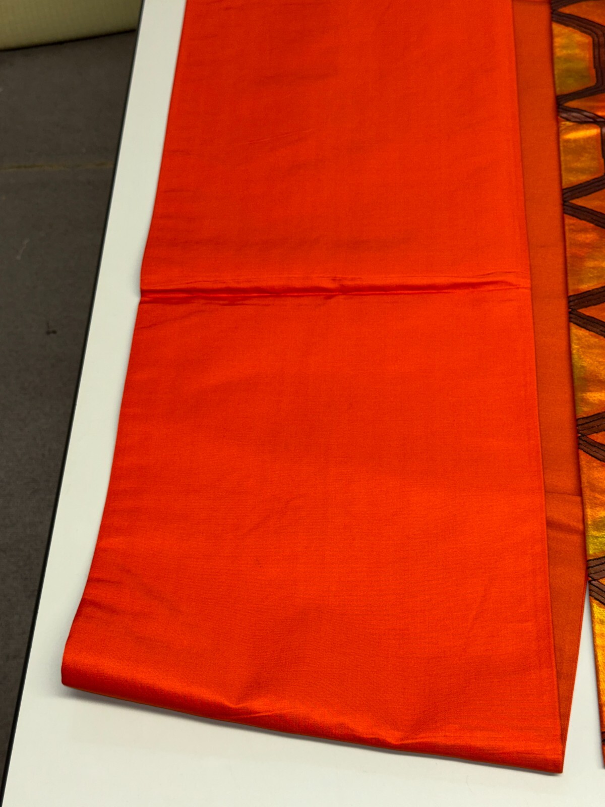 как выглядит Japanese Vintage Kimono Fukuro Obi silk Orange expensive tradition 170x12.2in фото