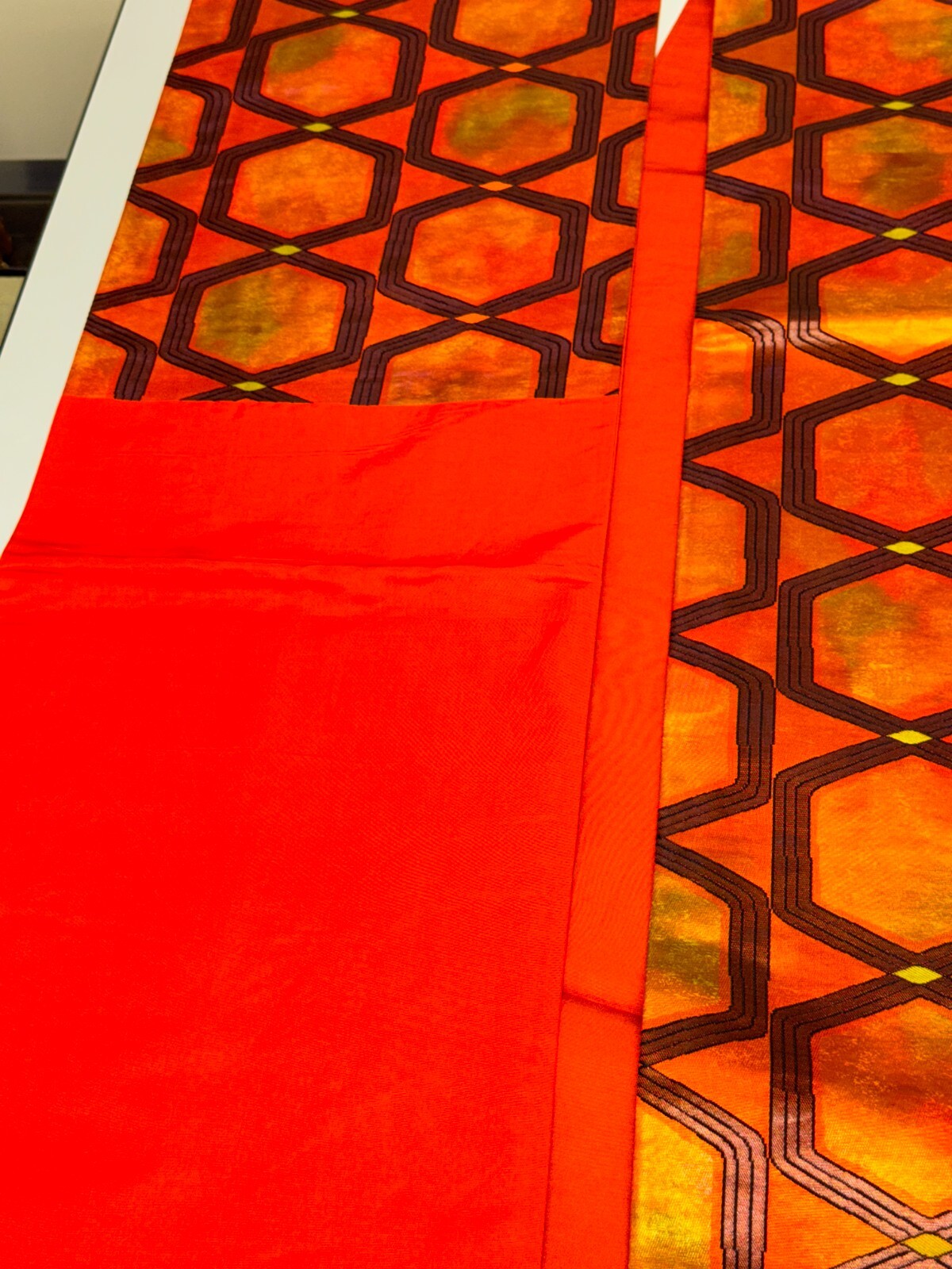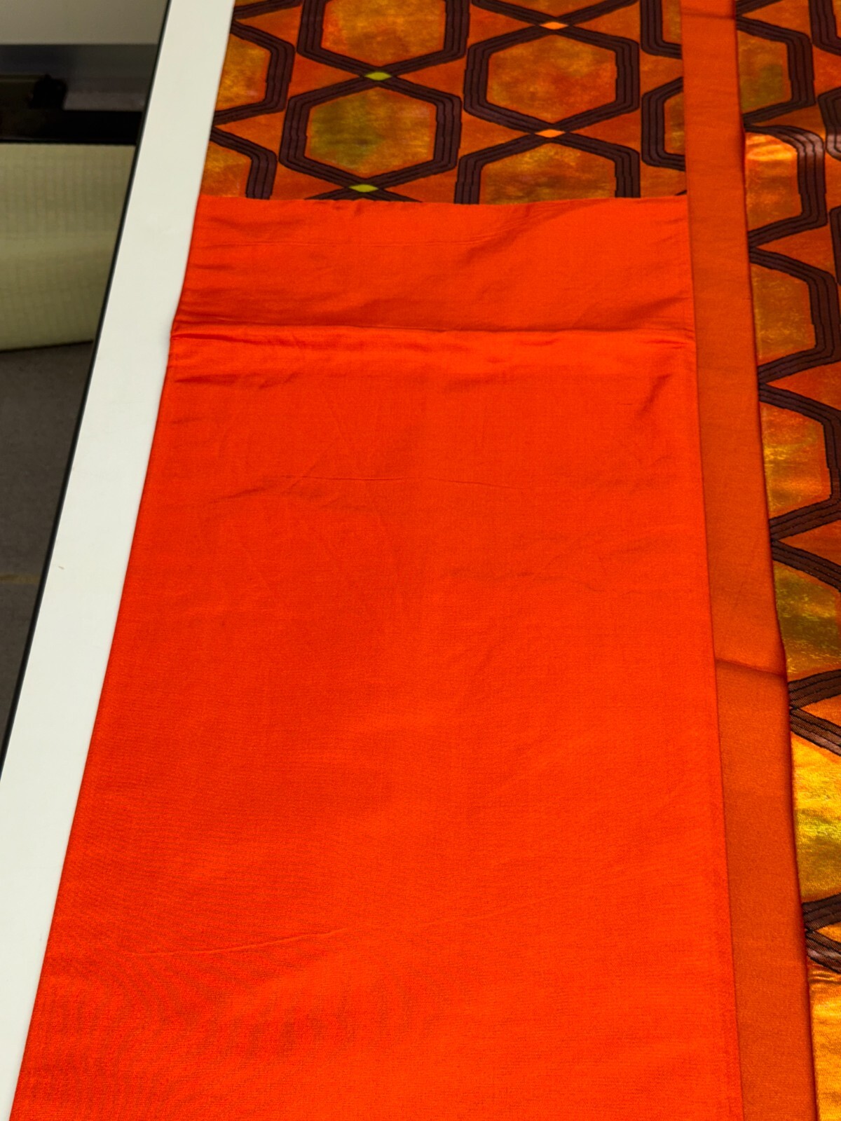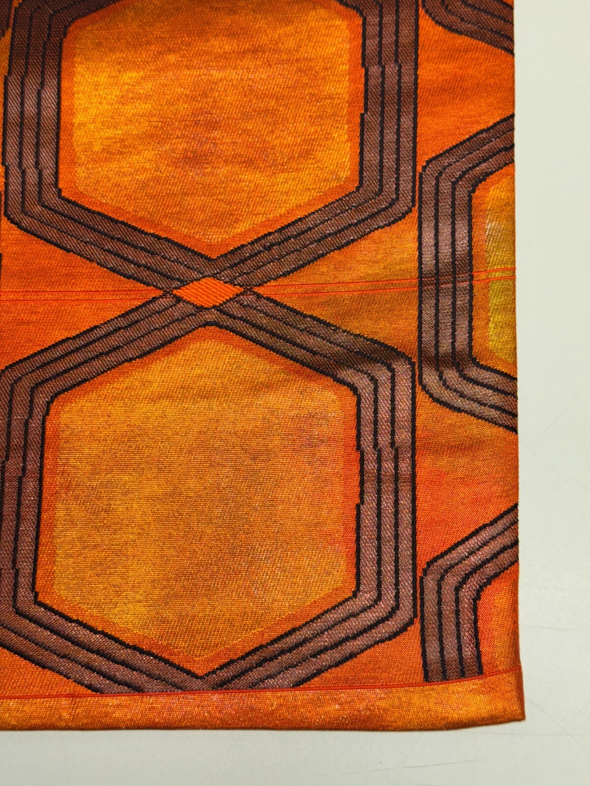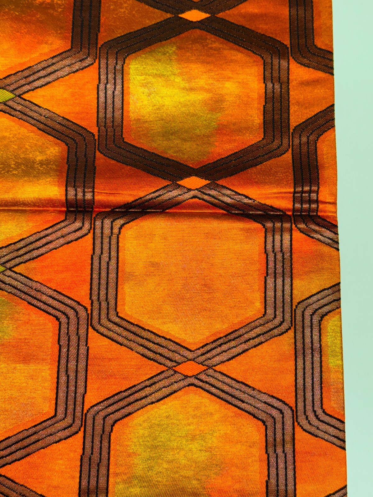 как выглядит Japanese Vintage Kimono Fukuro Obi silk Orange expensive tradition 170x12.2in фото