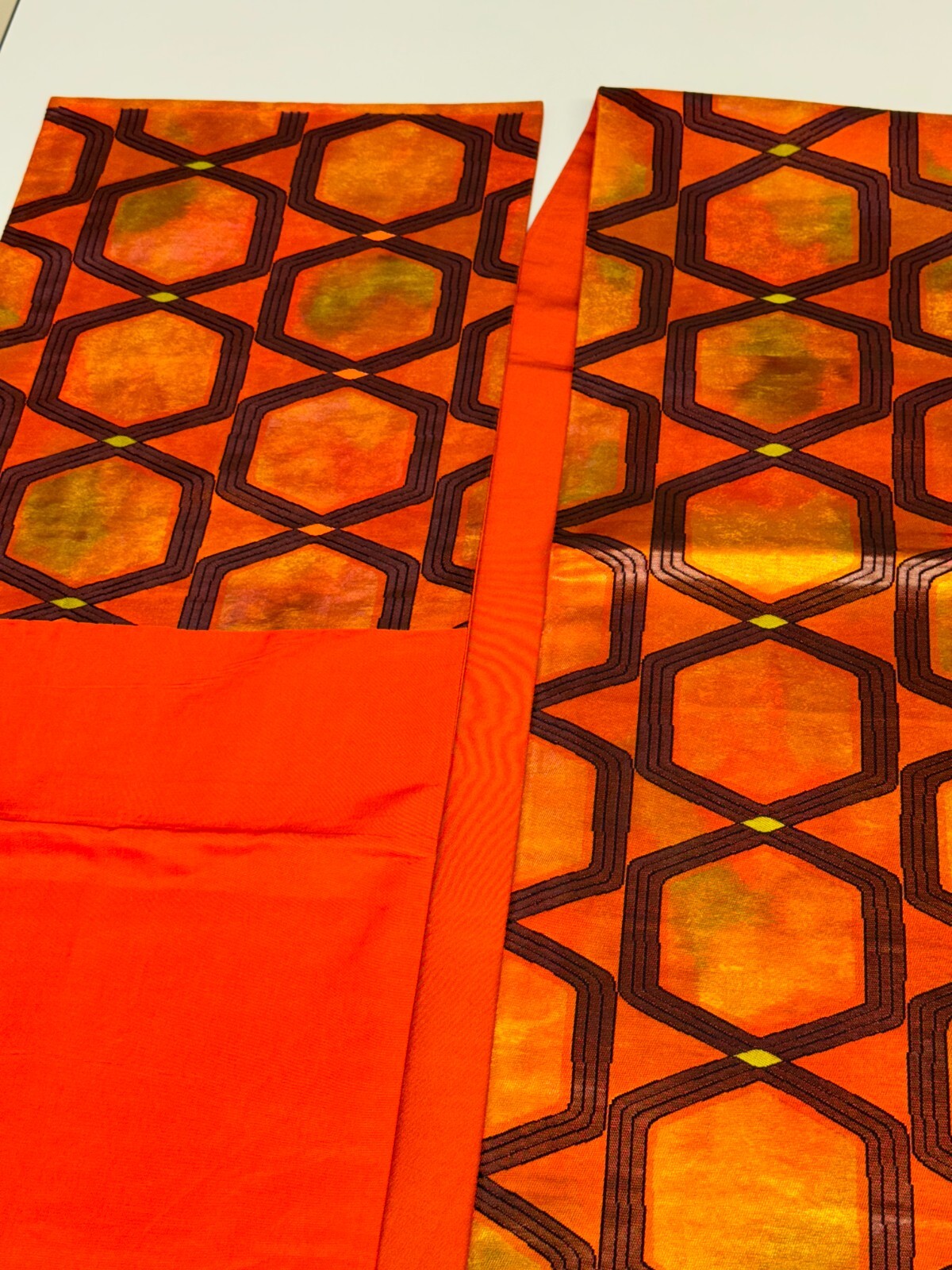 Japanese Vintage Kimono Fukuro Obi silk Orange expensive tradition 170x12.2in