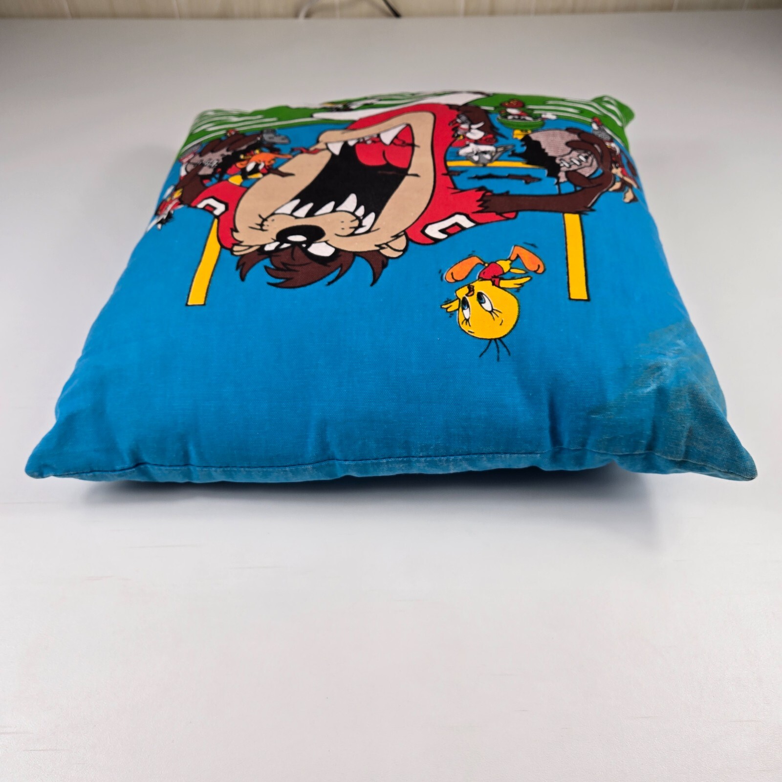 • Vintage Looney Tunes Taz Bugs Football Warner Bros 17 Square Throw Pillow 90s