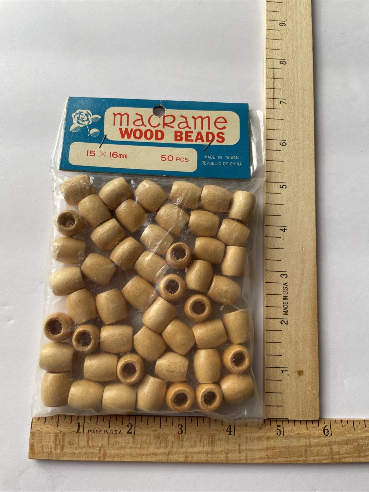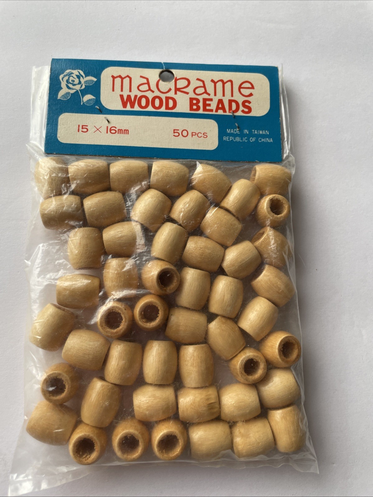 как выглядит Vintage Barrel Wood Macrame Beads 2 Bags of 50 Each 15x16mm and 16x14mm NOS фото