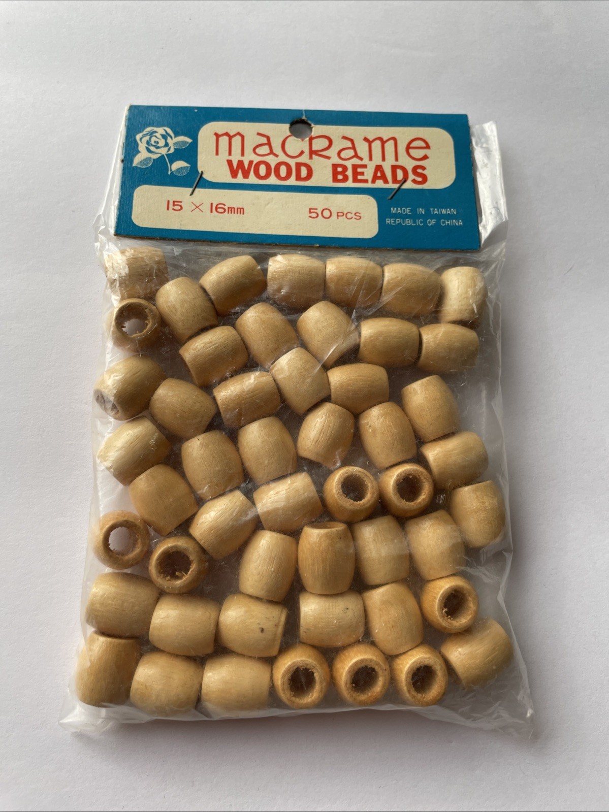 Vintage Barrel Wood Macrame Beads 2 Bags of 50 Each 15x16mm and 16x14mm NOS