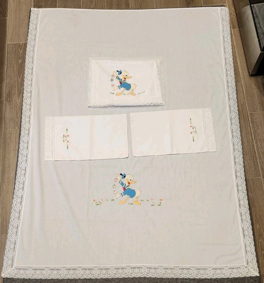 как выглядит Vintage Needlepoint Blanket Pillow Crib Toddler Baby Donald 66 x 48 See Photos фото