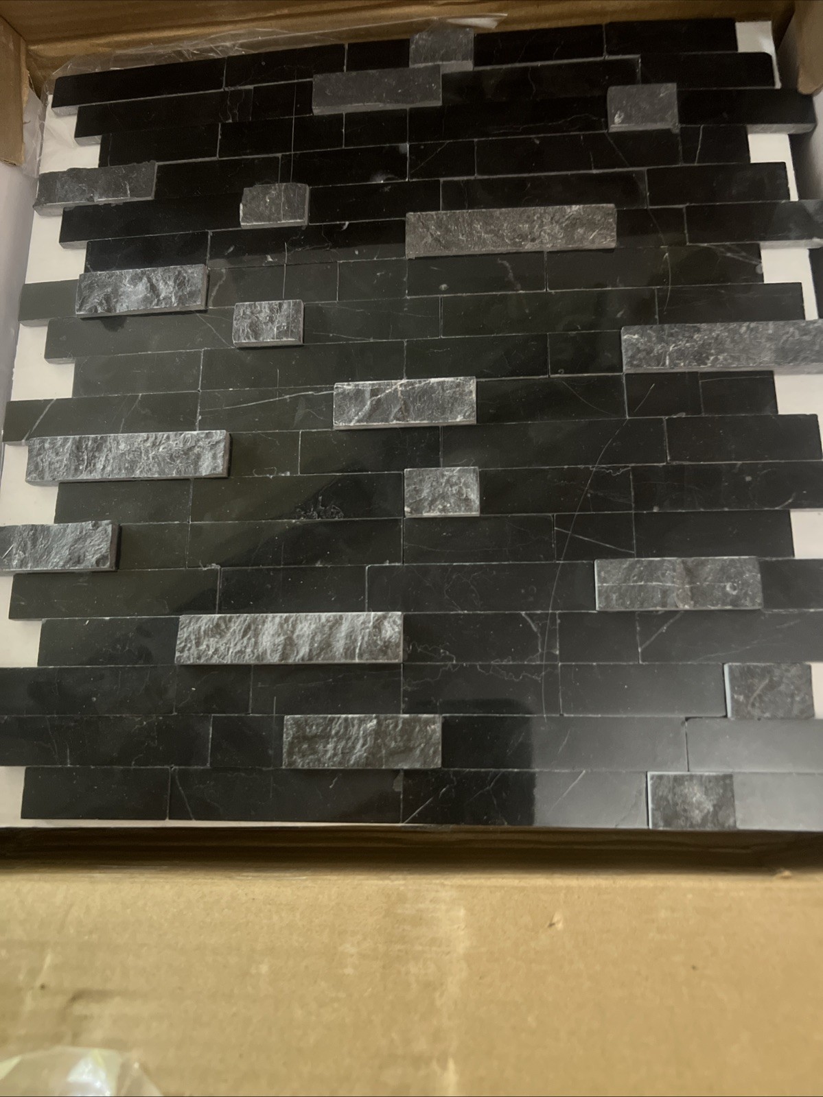 как выглядит SUNWINGS Peel and Stick Mosaic Natural 3D Stone Self Adhesive Tiles, Mixed Black фото