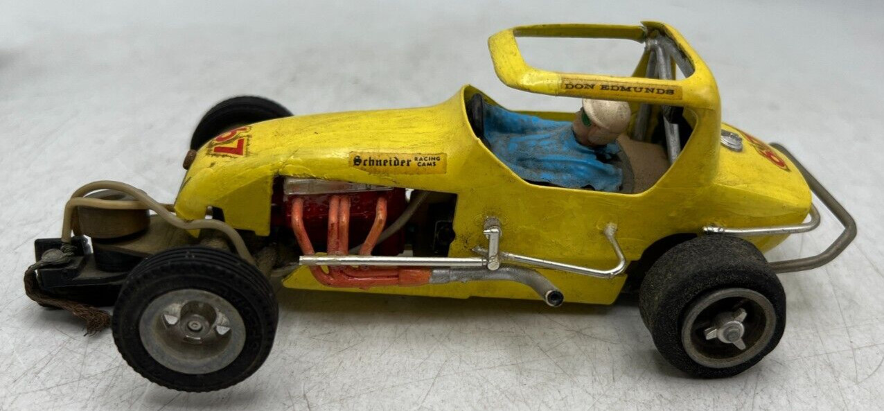 Vintage Custom 1/24 Scale Slot Car Yellow Midget Race Car w/ Mabuchi Motor
