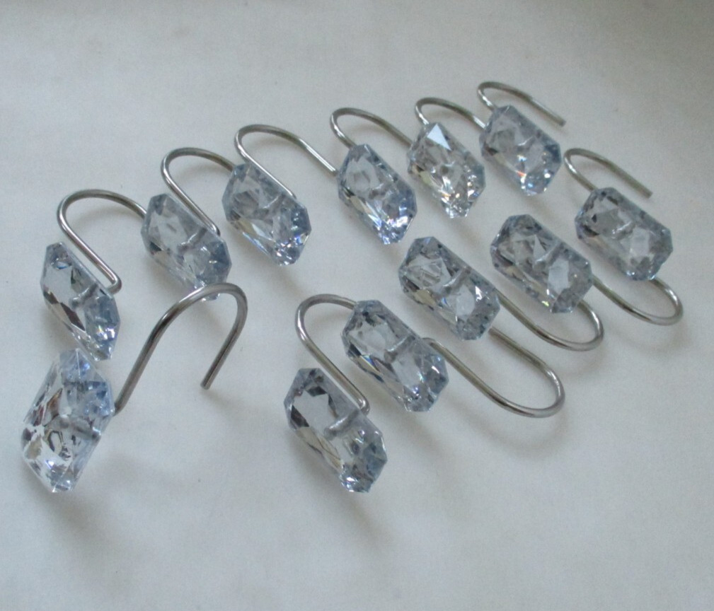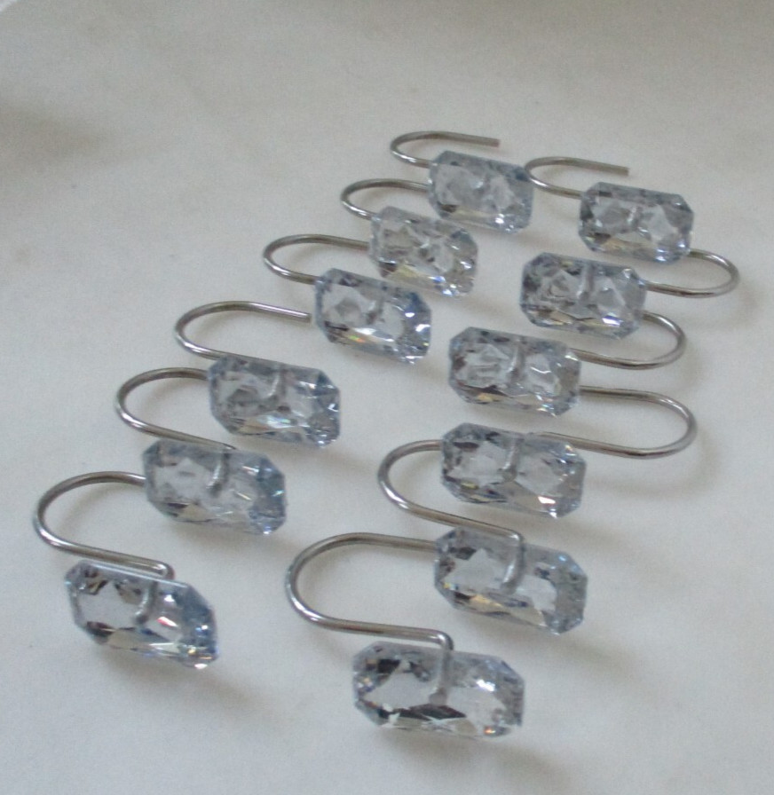 как выглядит Bling Shower Curtain Hooks Rings for Bathroom Metal with Large Square Decorative фото