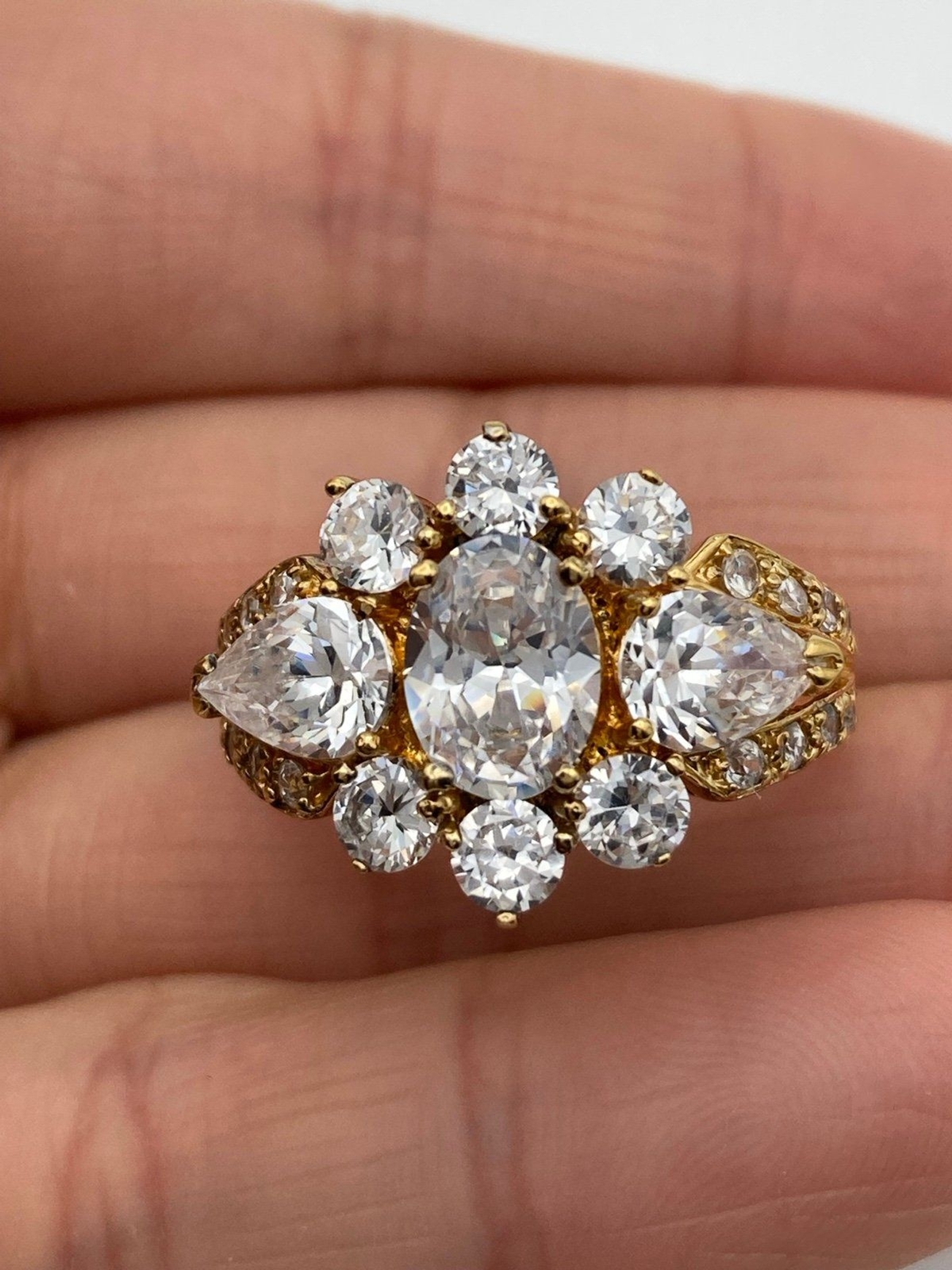 как выглядит 925 sterling silver 14k gold vermeil CZ floral ring фото