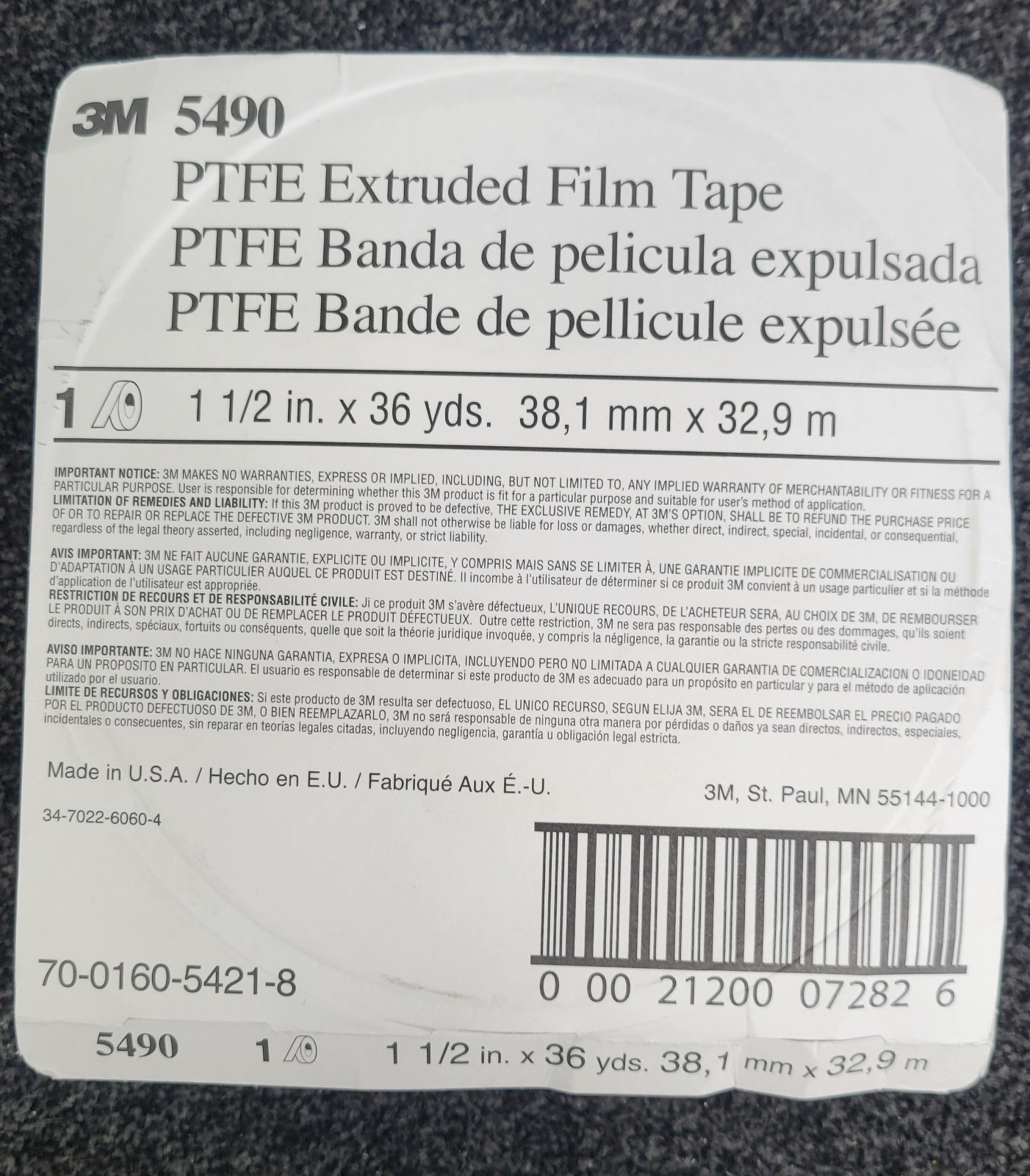 3M 5490 Non Stick PTFE Film Tape - 1 1/2 in x 36 yds, 38,1 mm x 32,9 m - 1pcs