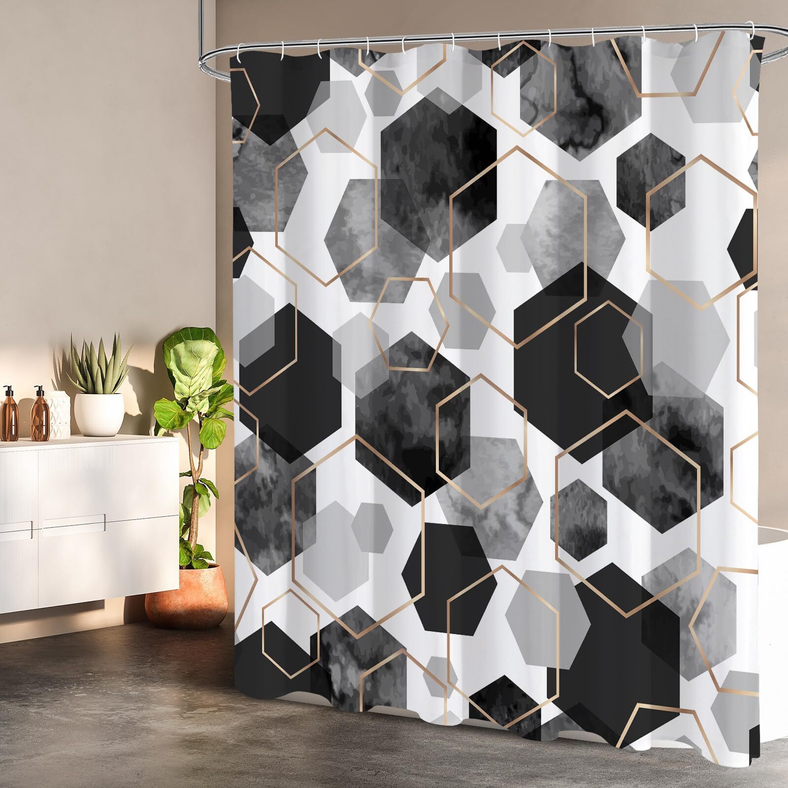 Black Grey Modern Geometric Shower Curtain 72x72 Abstract Waterproof Art Decor