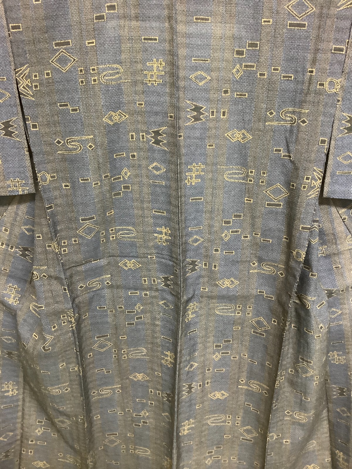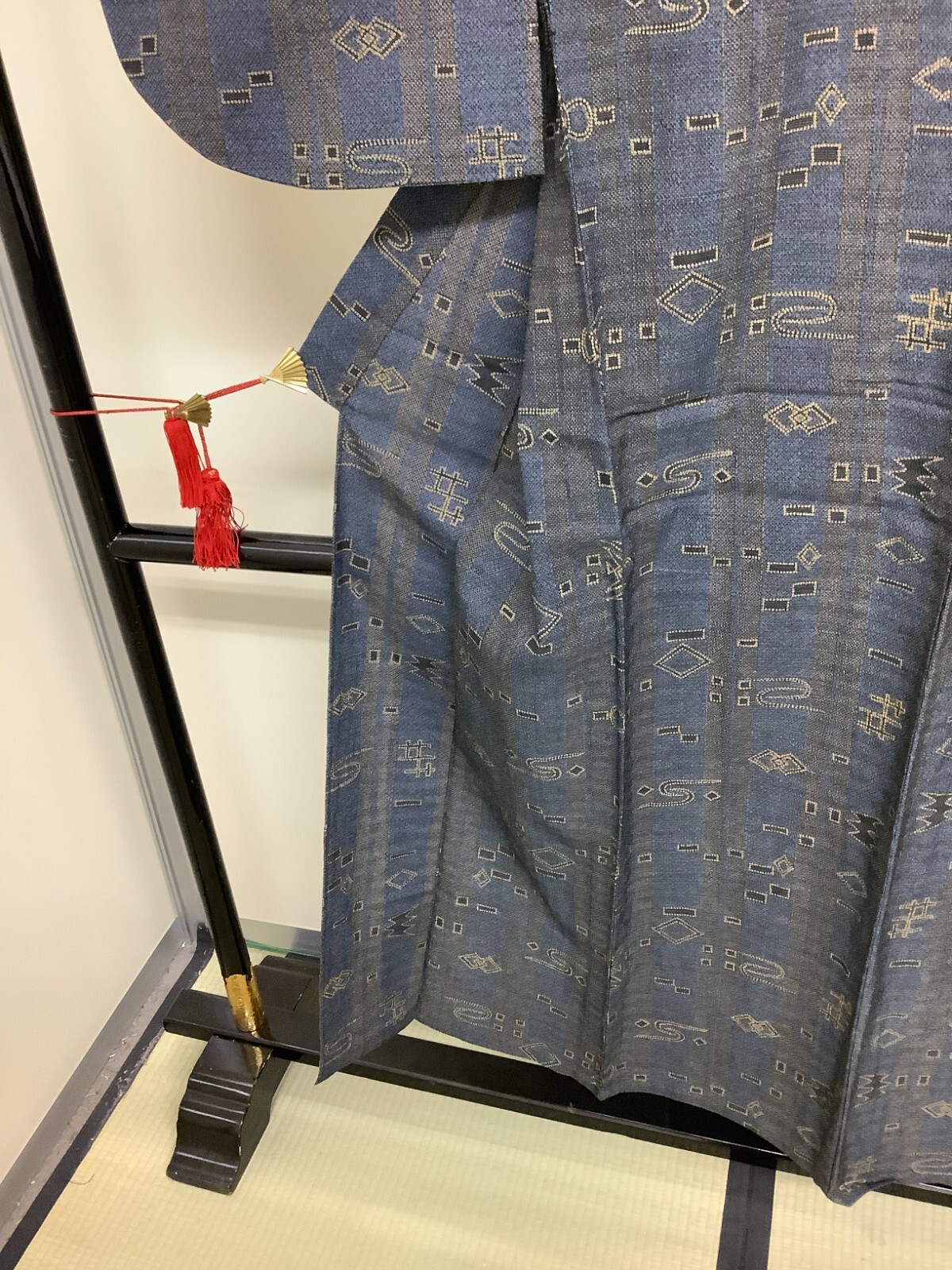 Japanese Vintage Kimono pure silk dark navy blue tradition Height 57.87inch
