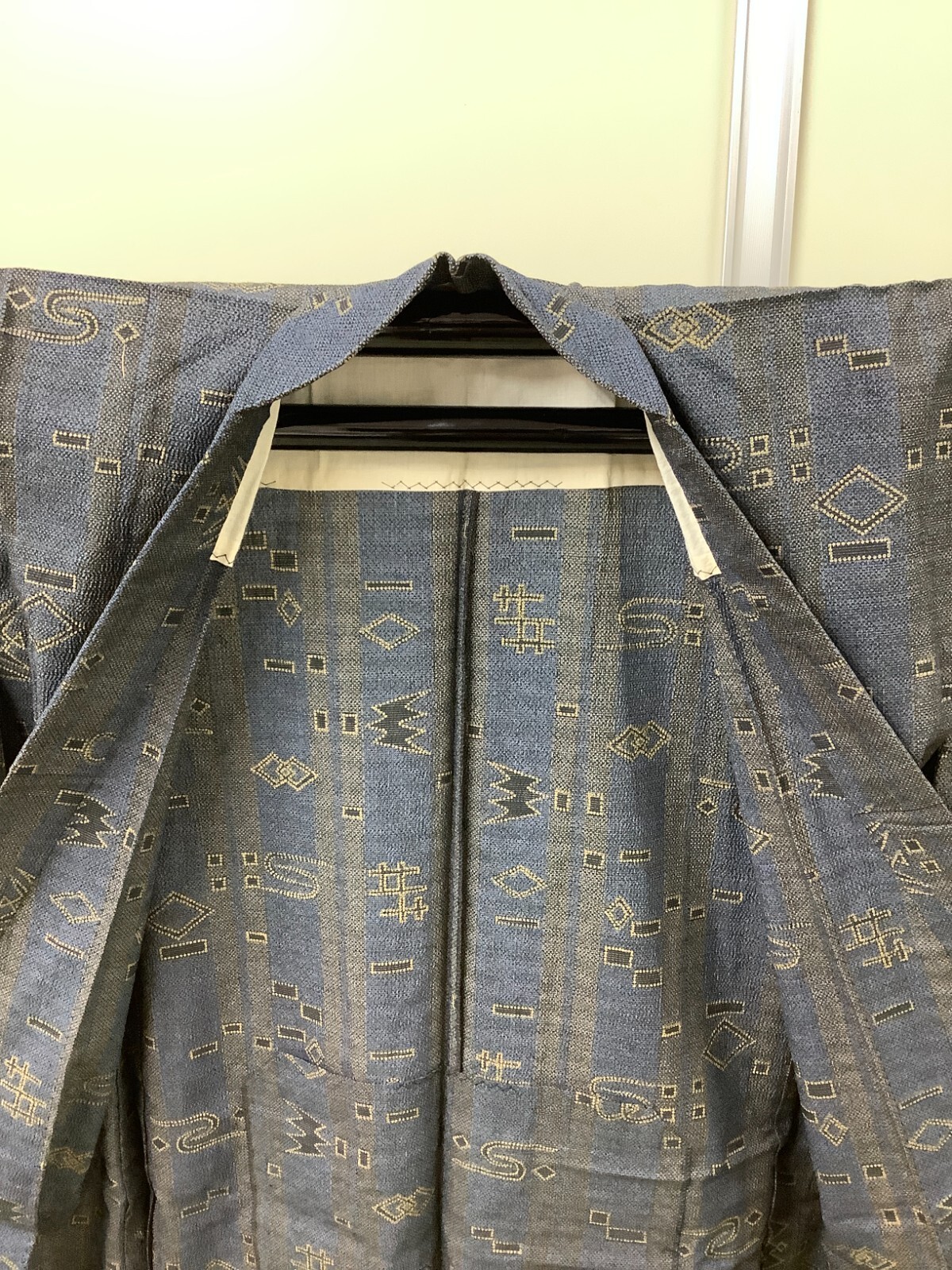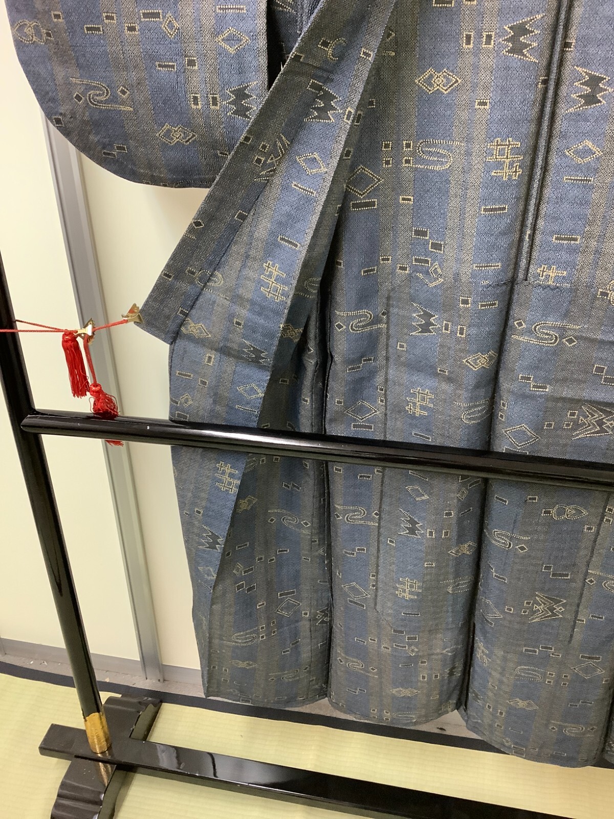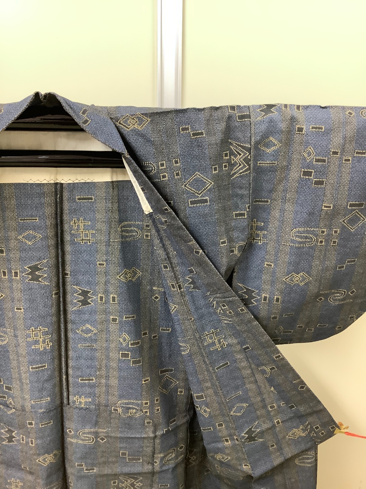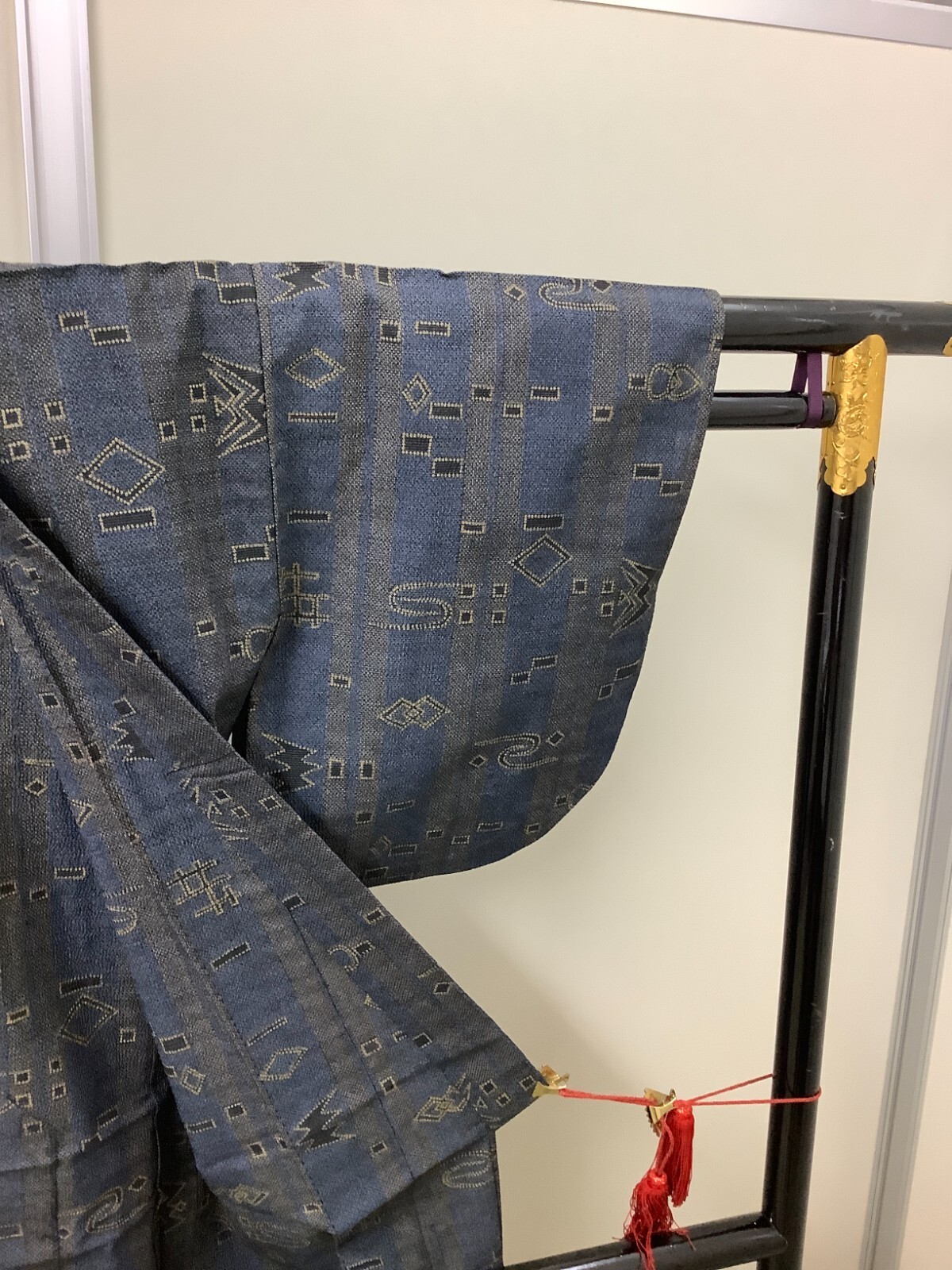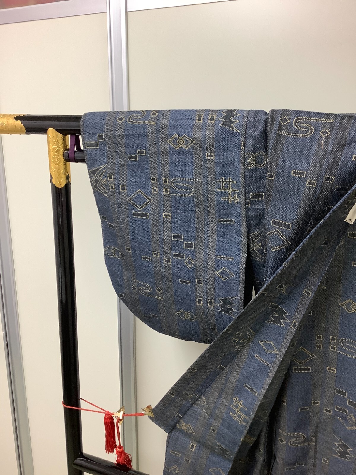как выглядит Japanese Vintage Kimono pure silk dark navy blue tradition Height 57.87inch фото
