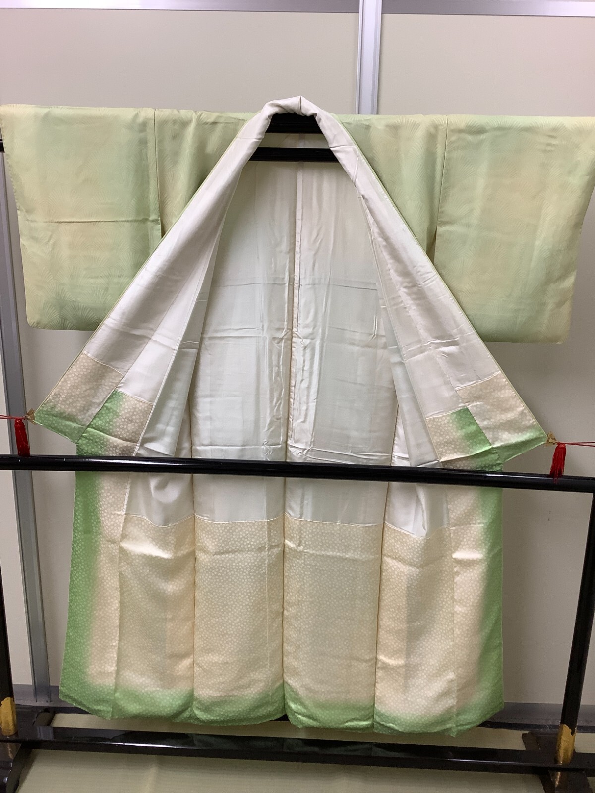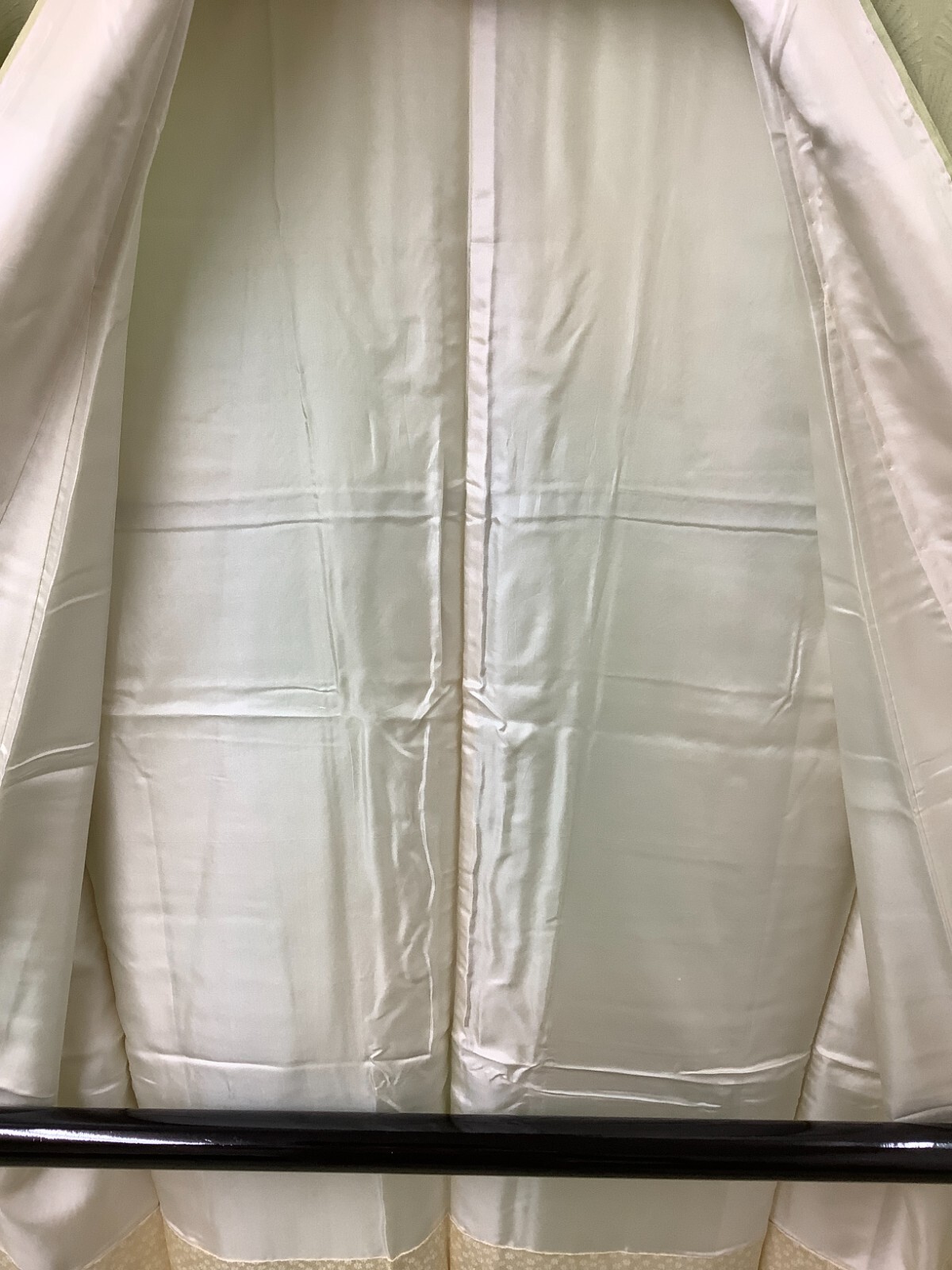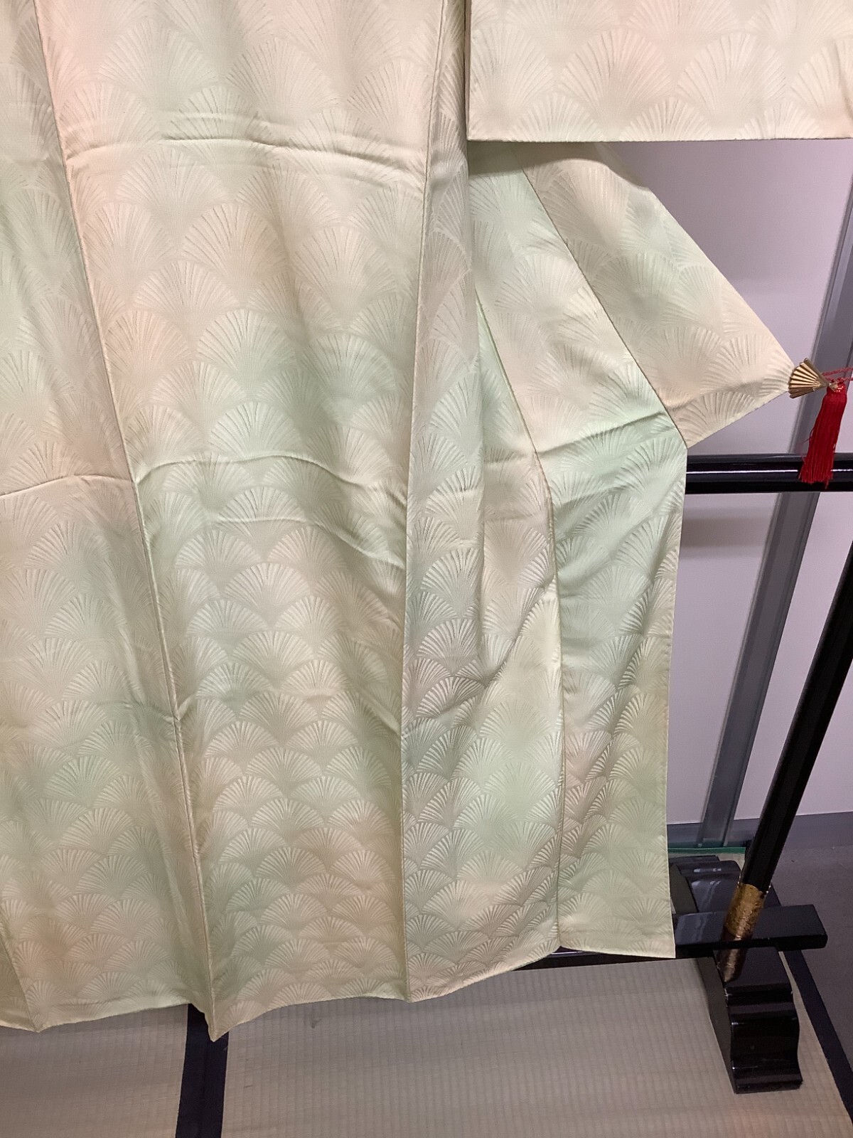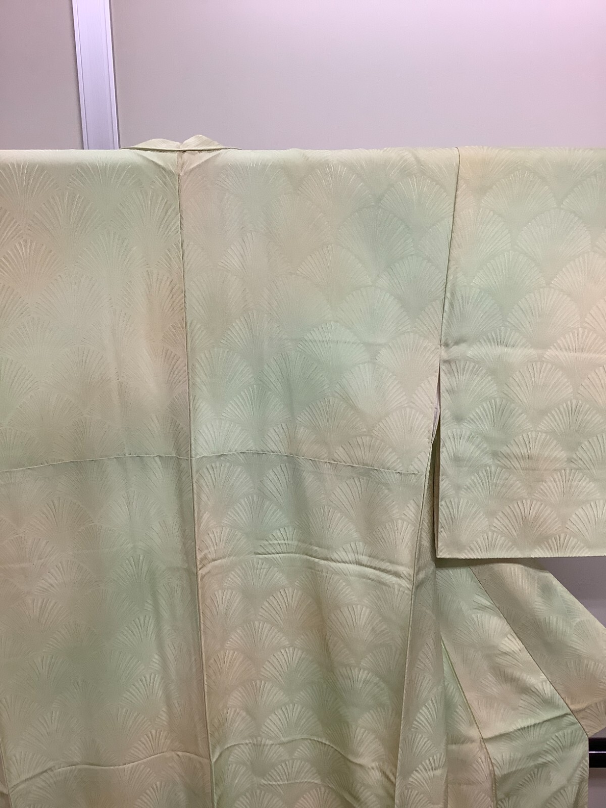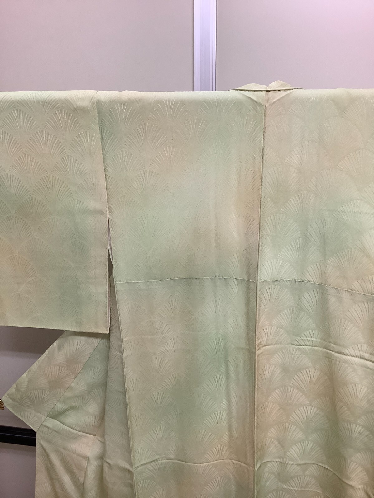 Japanese Vintage Kimono pure silk light green expensive tradition Height 61.81in