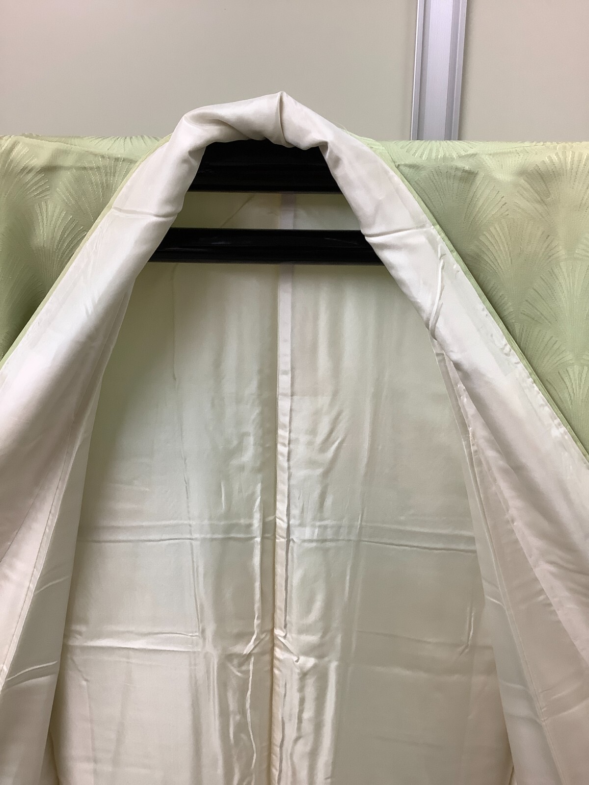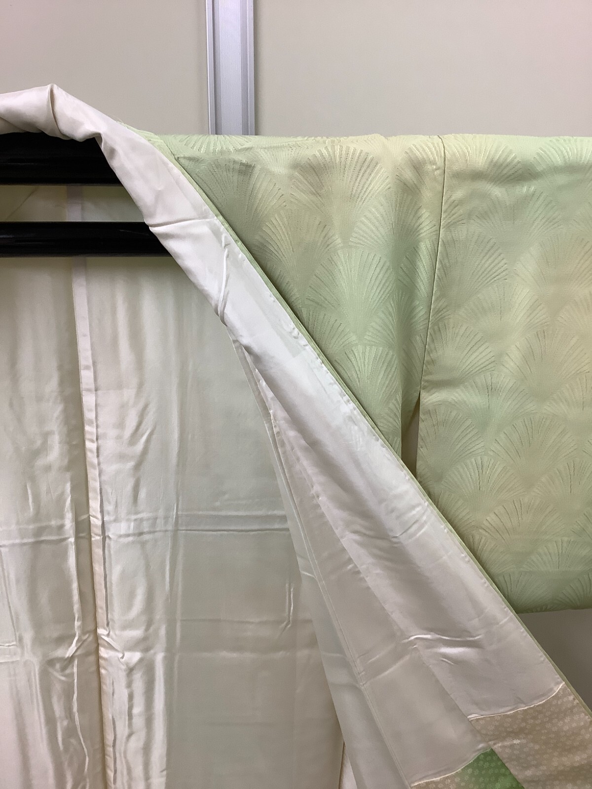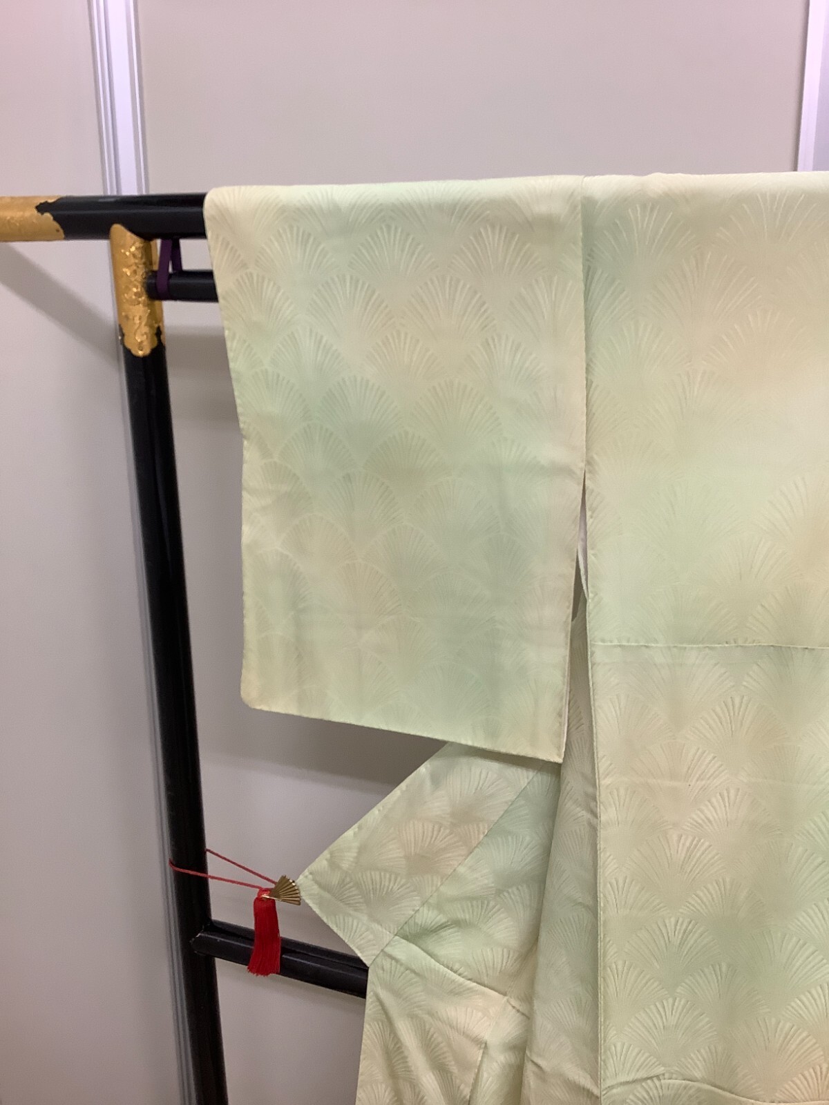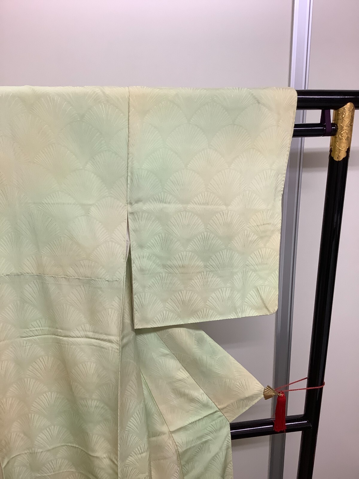 Japanese Vintage Kimono pure silk light green expensive tradition Height 61.81in