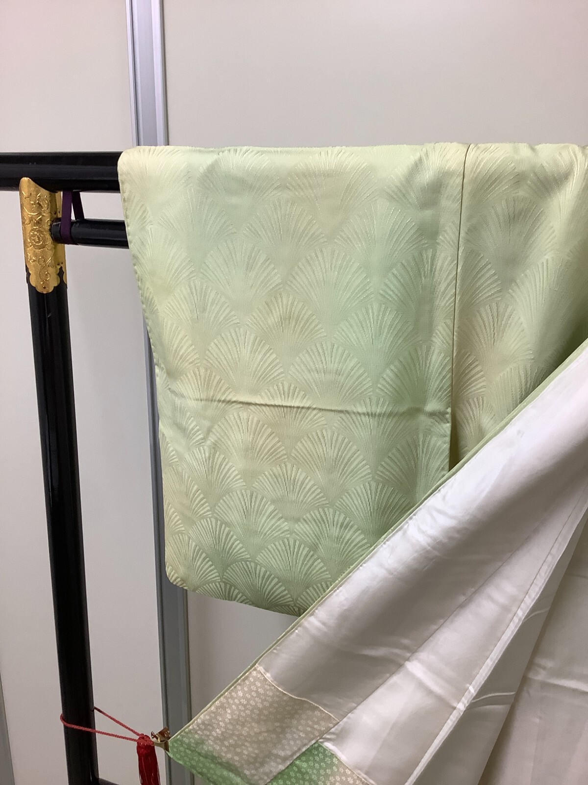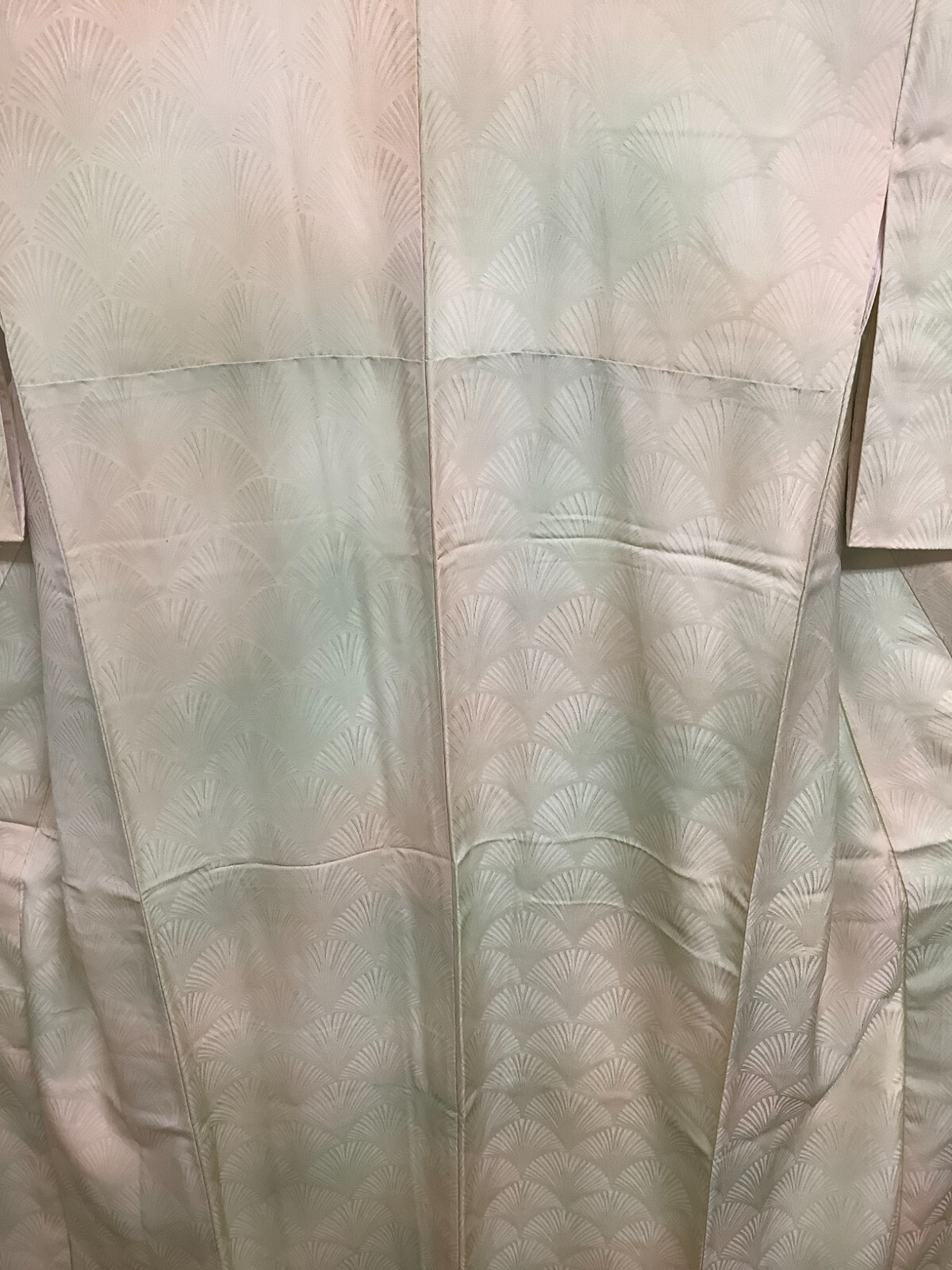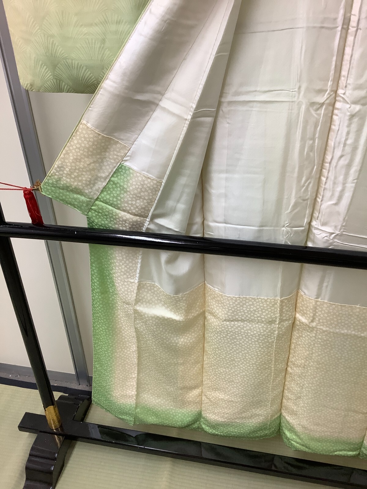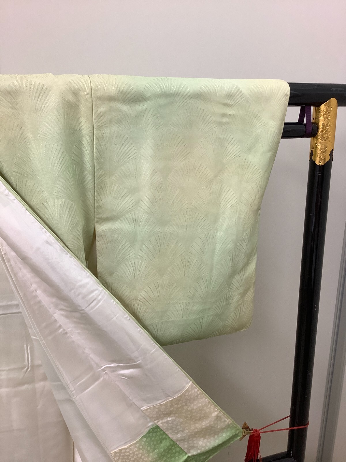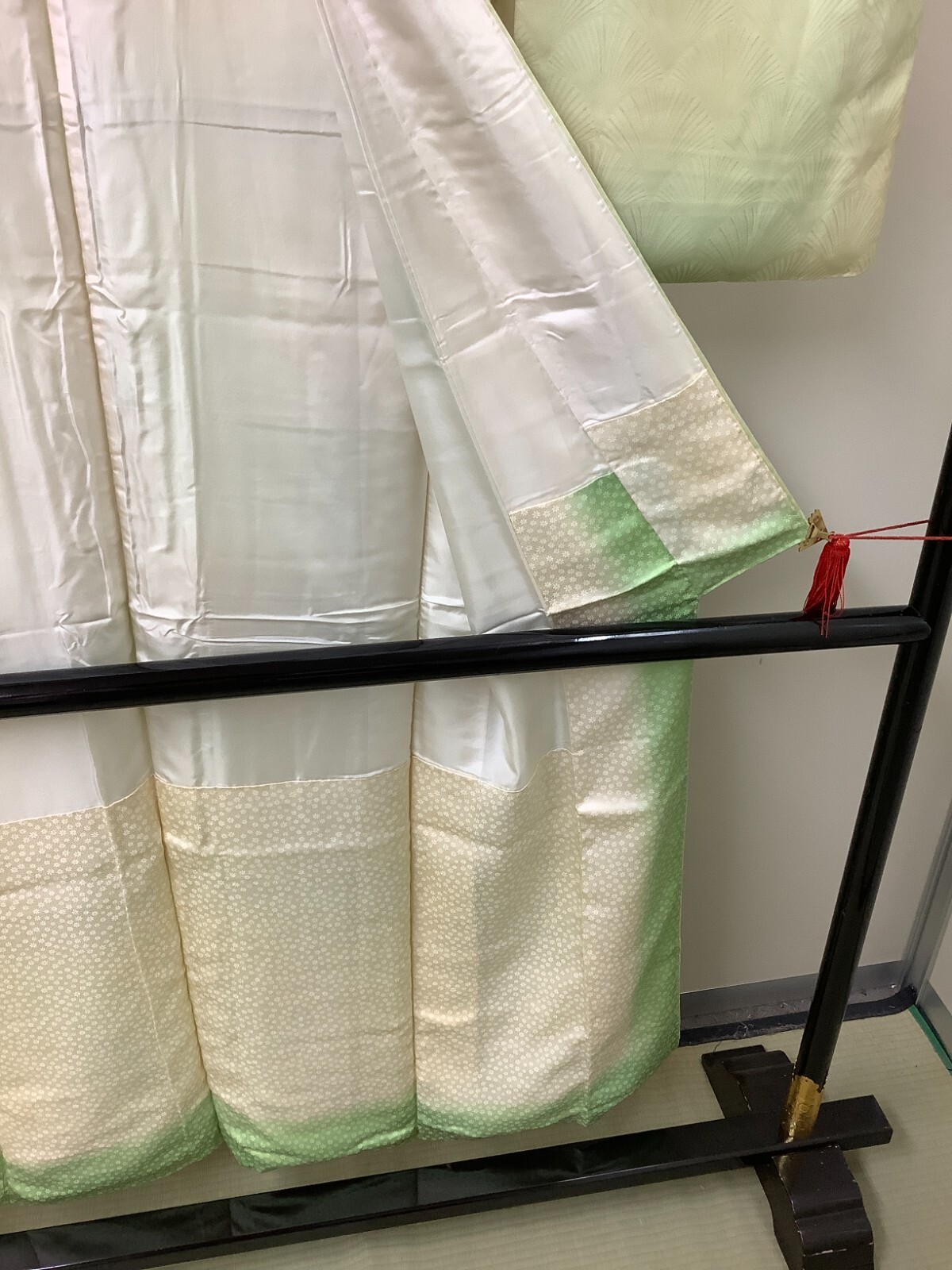 Japanese Vintage Kimono pure silk light green expensive tradition Height 61.81in