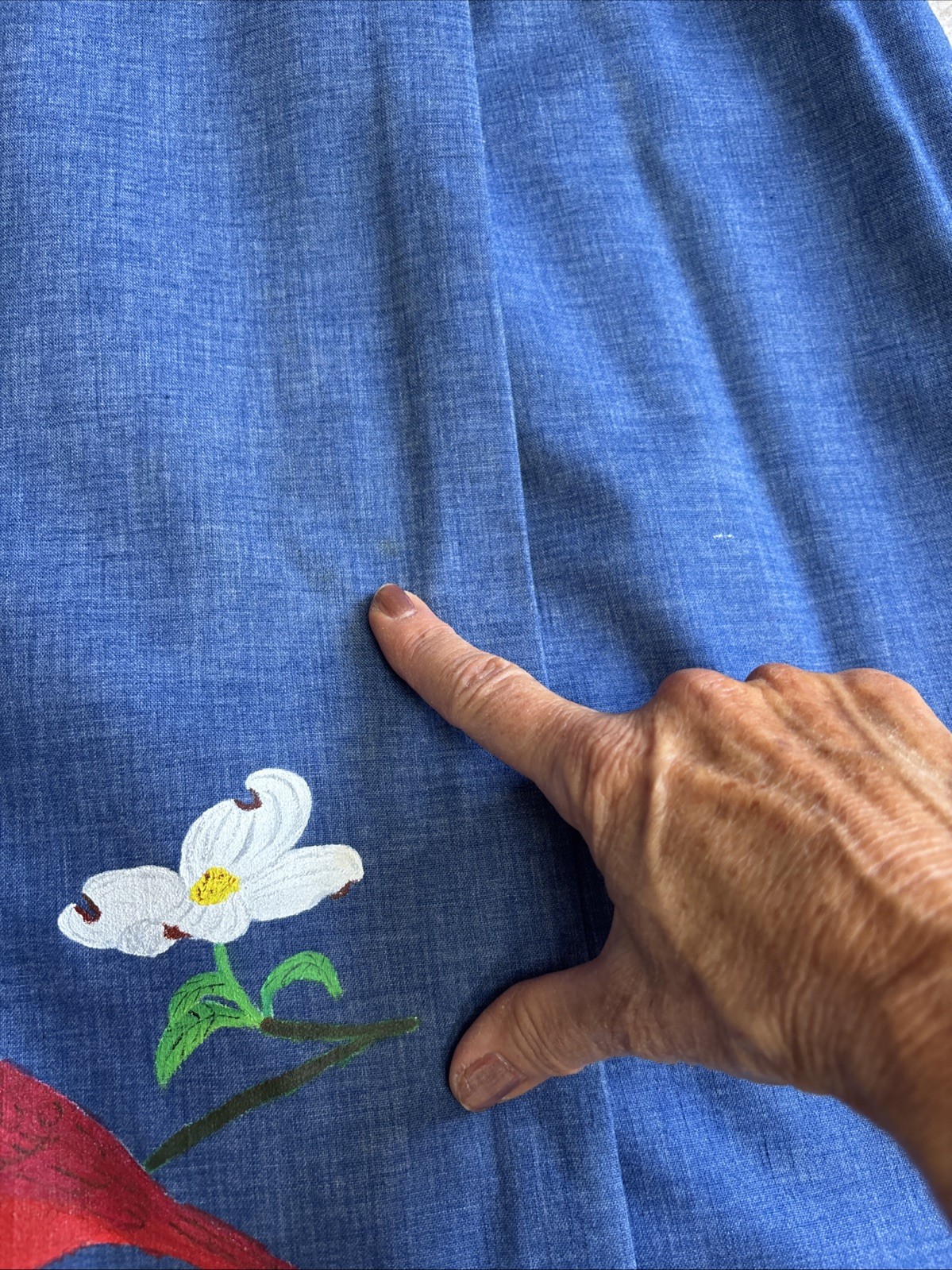 Handmade Woman s Hand Painted Red Cardinal Bird 70 s Chambray Wrap Skirt VTG
