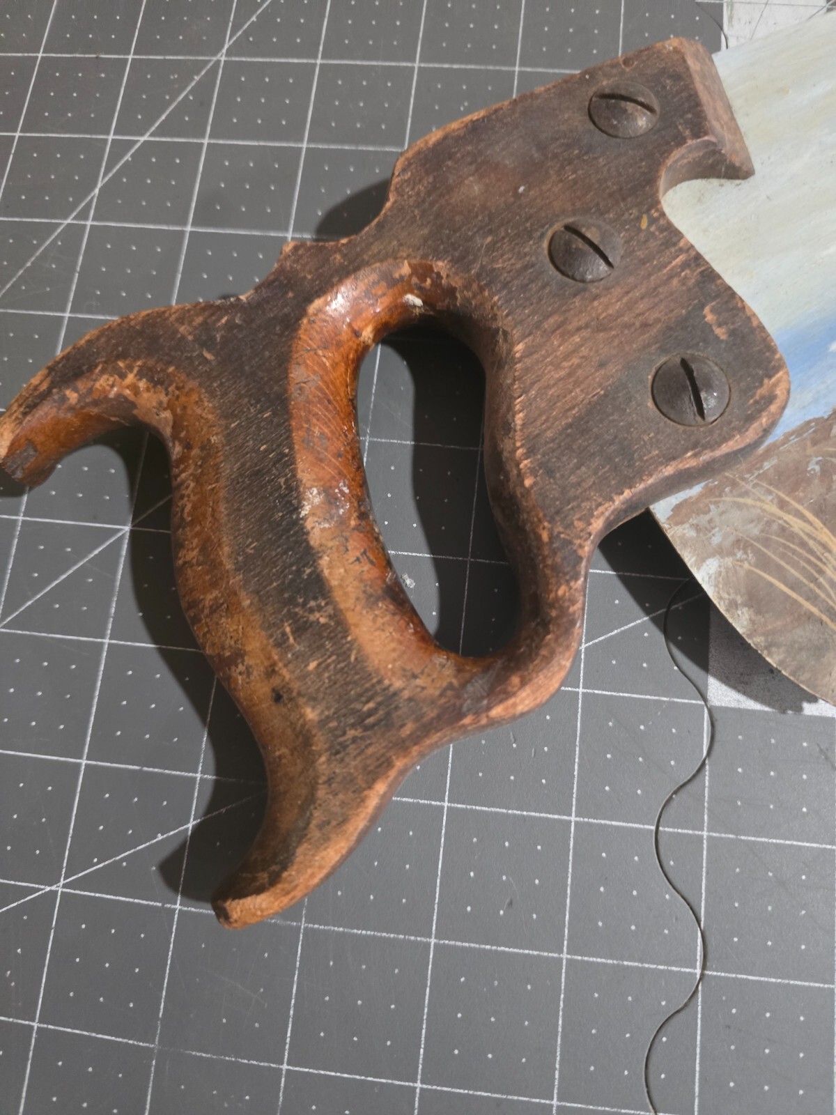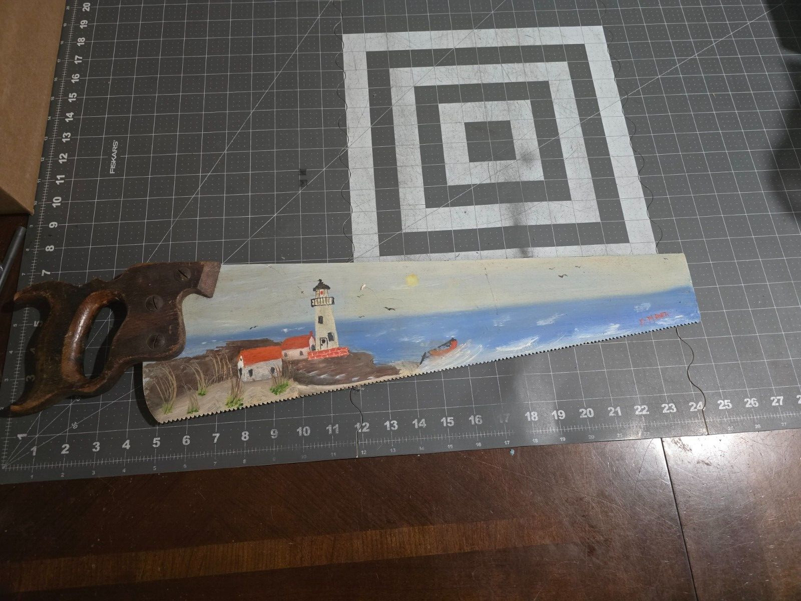 Vintage Saw Hand Painted Lighthouse Beach Folk Art Signed Decor