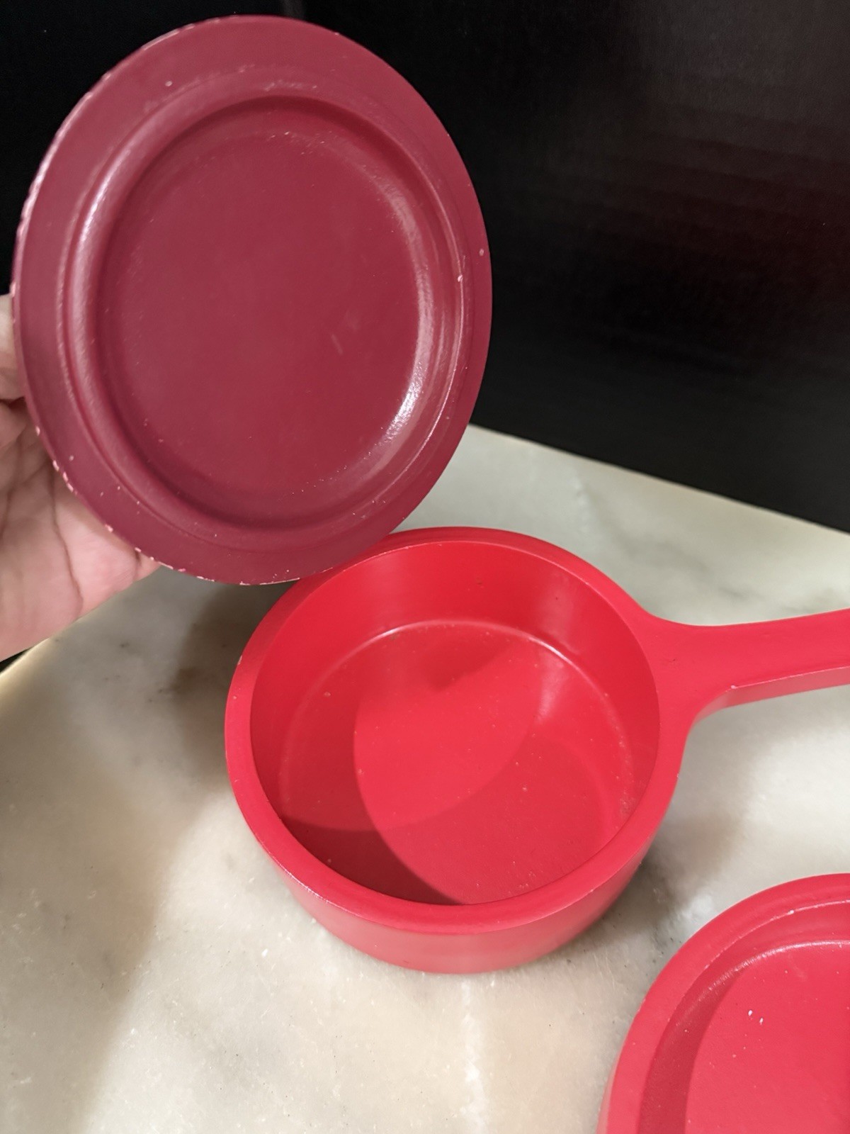 как выглядит Melissa Doug Red Wooden Pots And Pans Toy Cooking 5 Piece Set фото