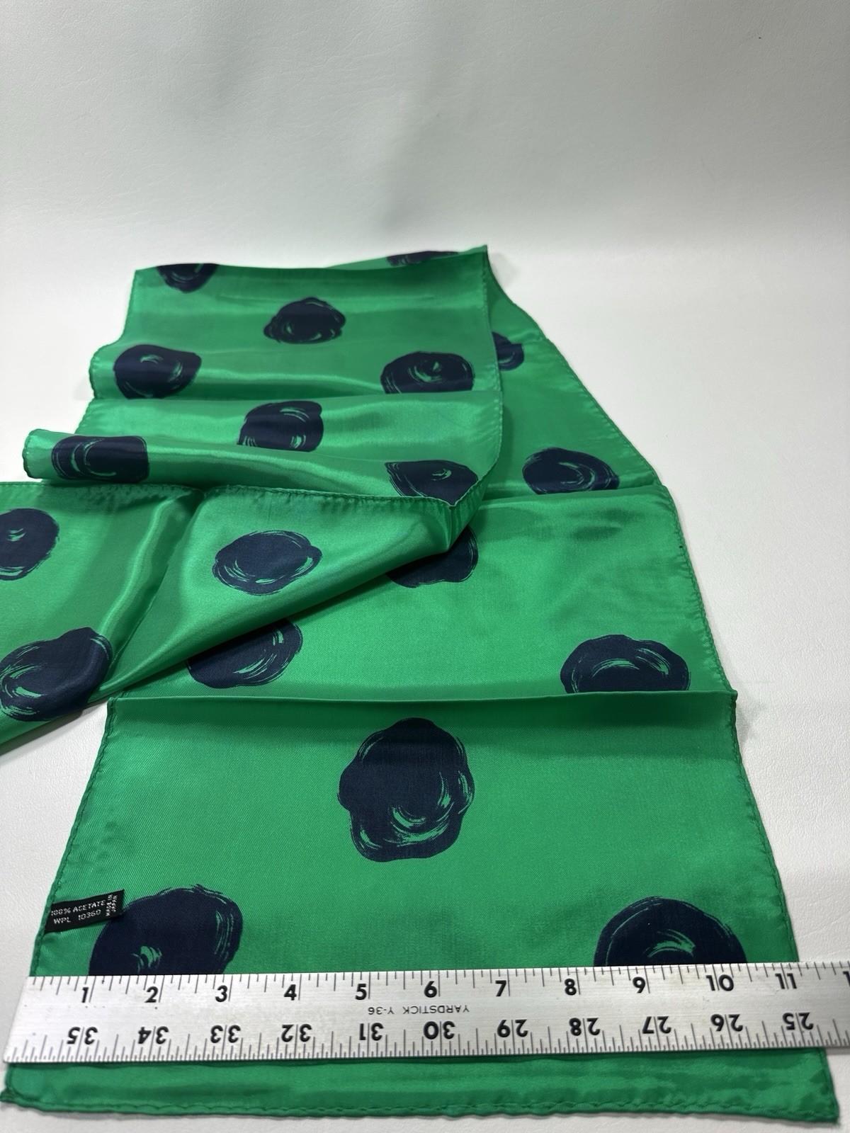 как выглядит Vintage Green Scarf Navy Blue Dot Flower Abstract Hand Rolled Edges Japan 51 фото