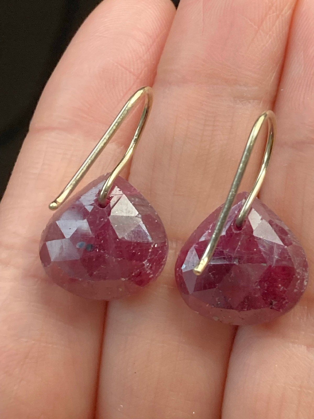 как выглядит Sterling silver teardrop faceted natural sapphire Earrings фото