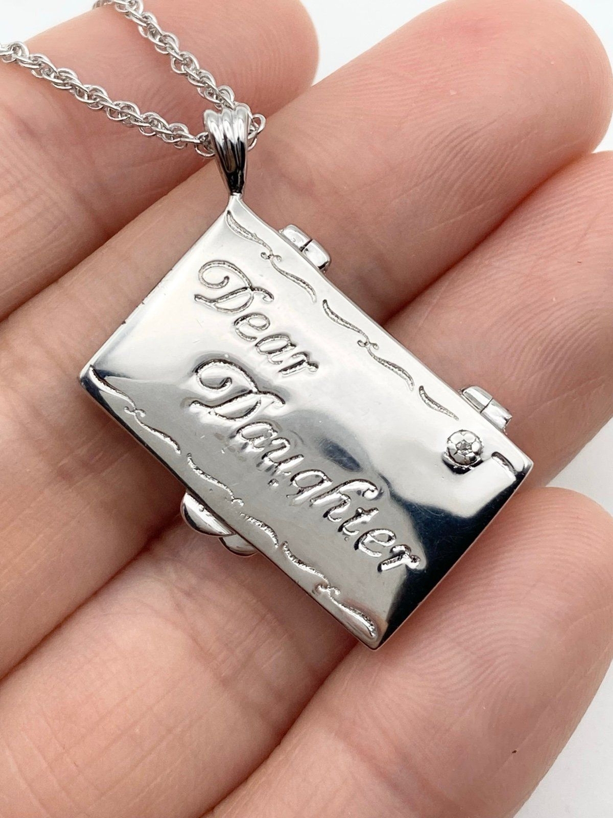 925 sterling silver 14k gold genuine diamond dear daughter locket necklace