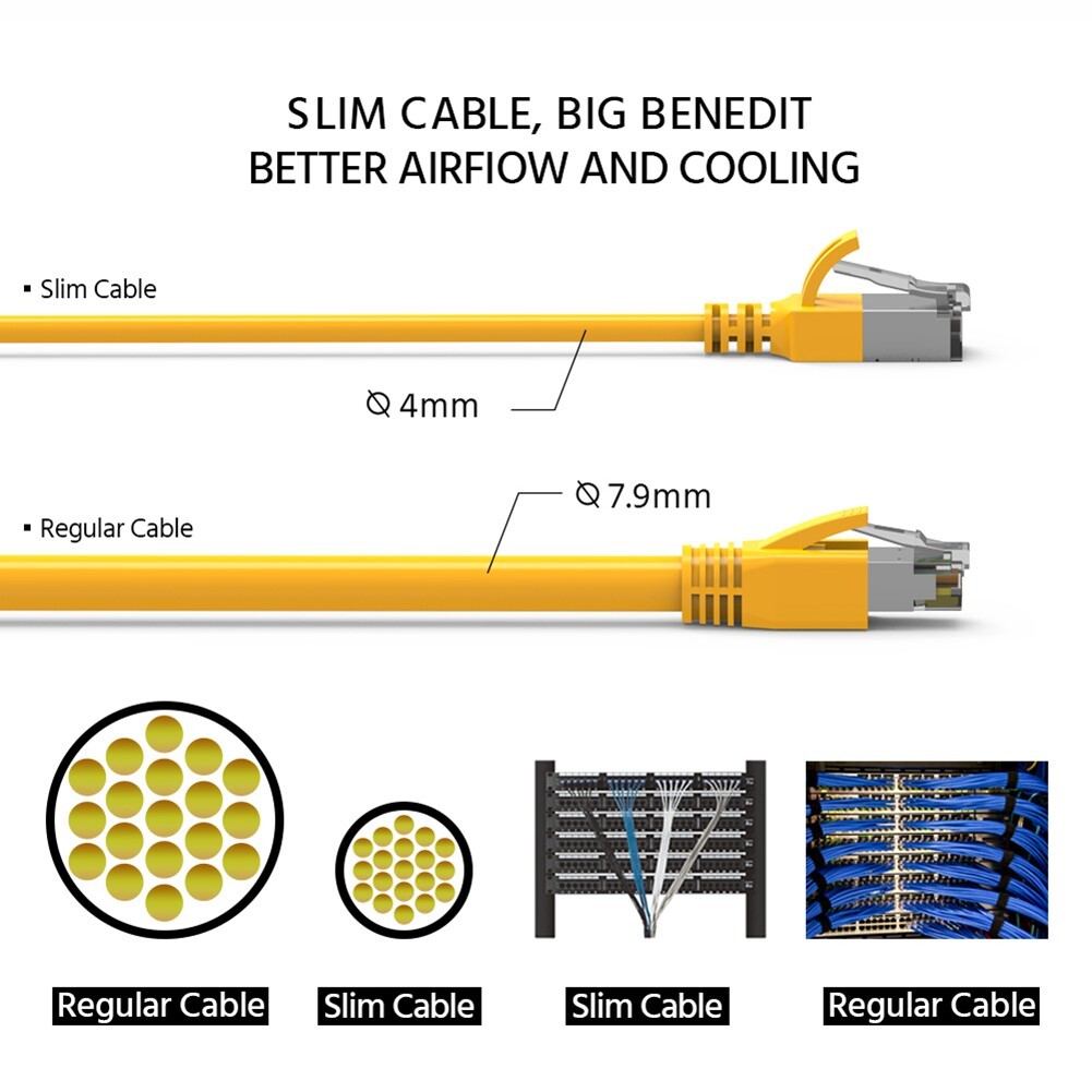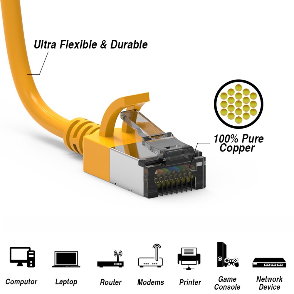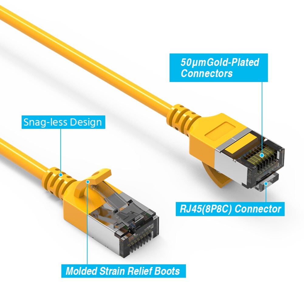 2FT Cat8 RJ45 Network LAN Ethernet U/FTP Shield Patch Cable Slim 30AWG Yellow