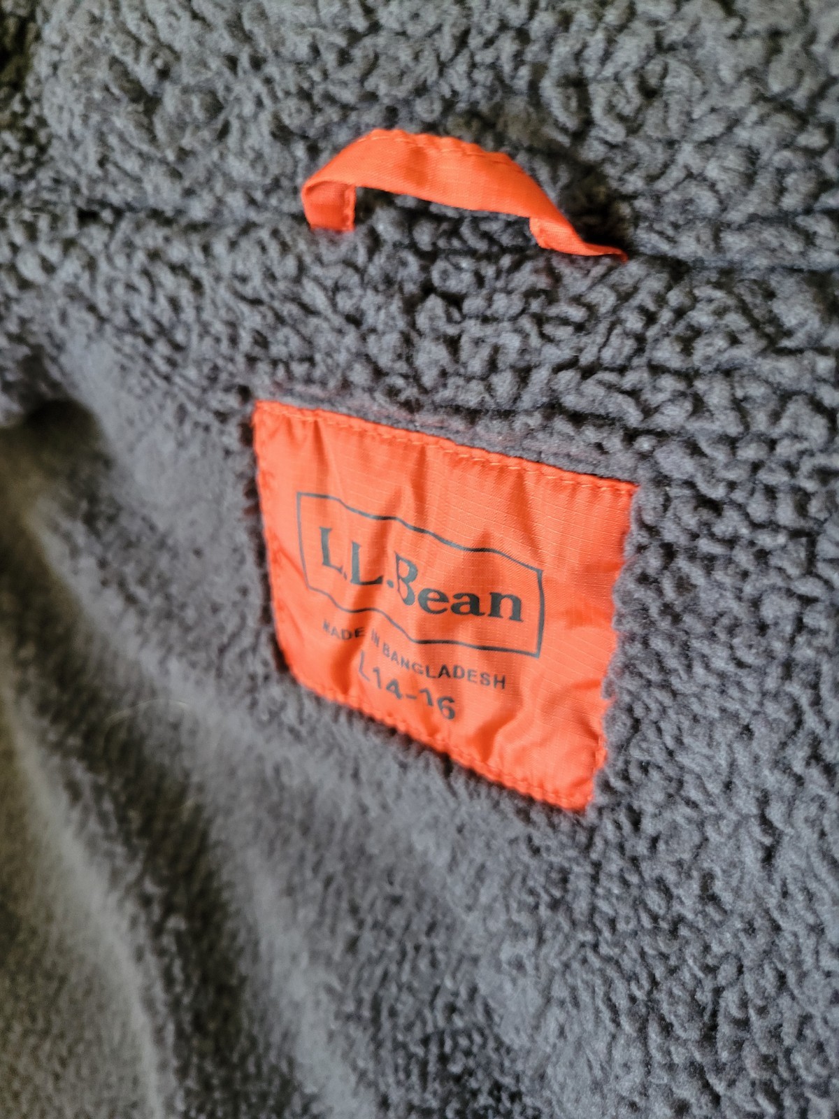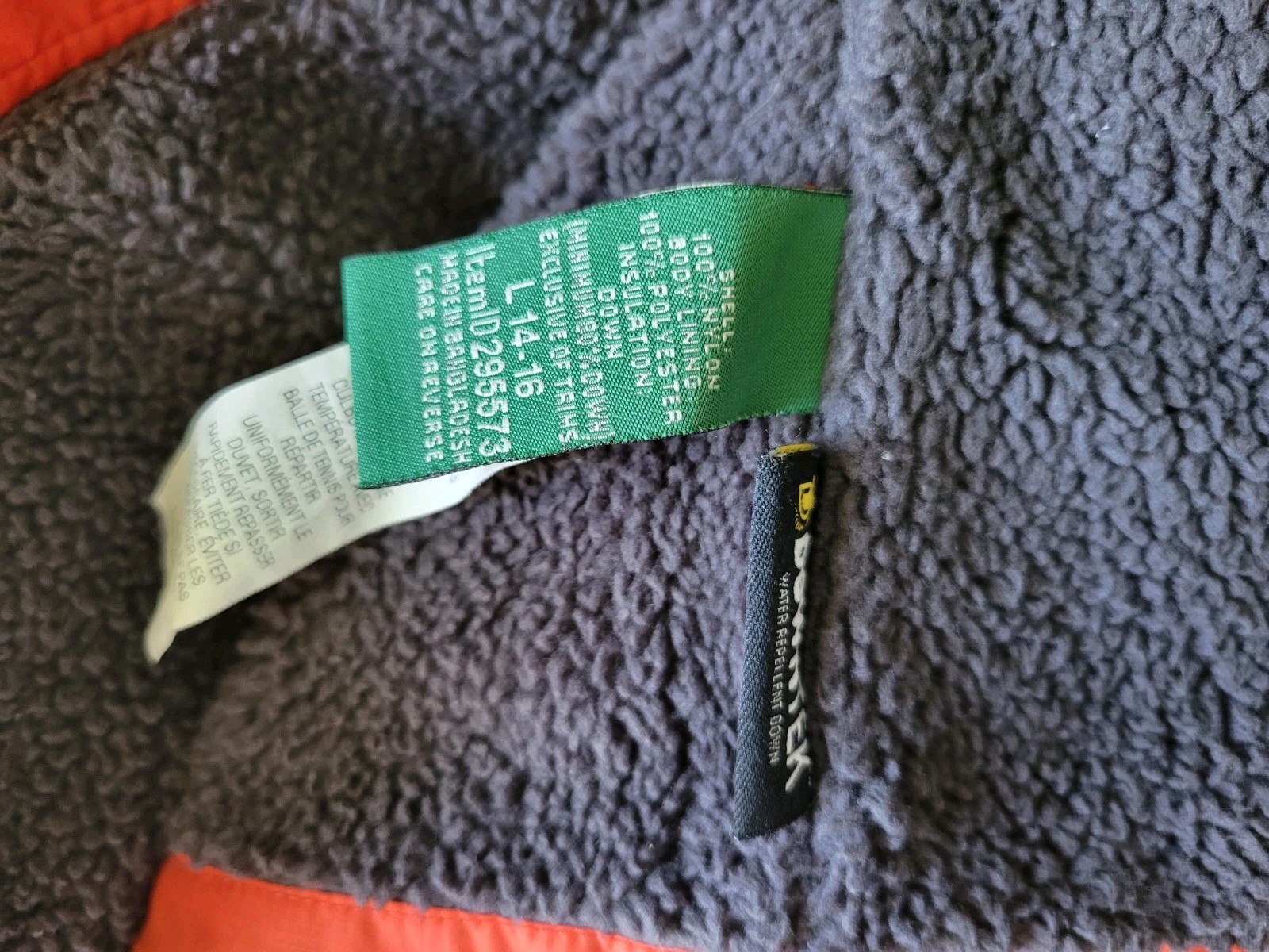 как выглядит LL Bean Boys Sz L 14/16 Orange/Grey Fleece Lined Winter Vest w Downtek фото