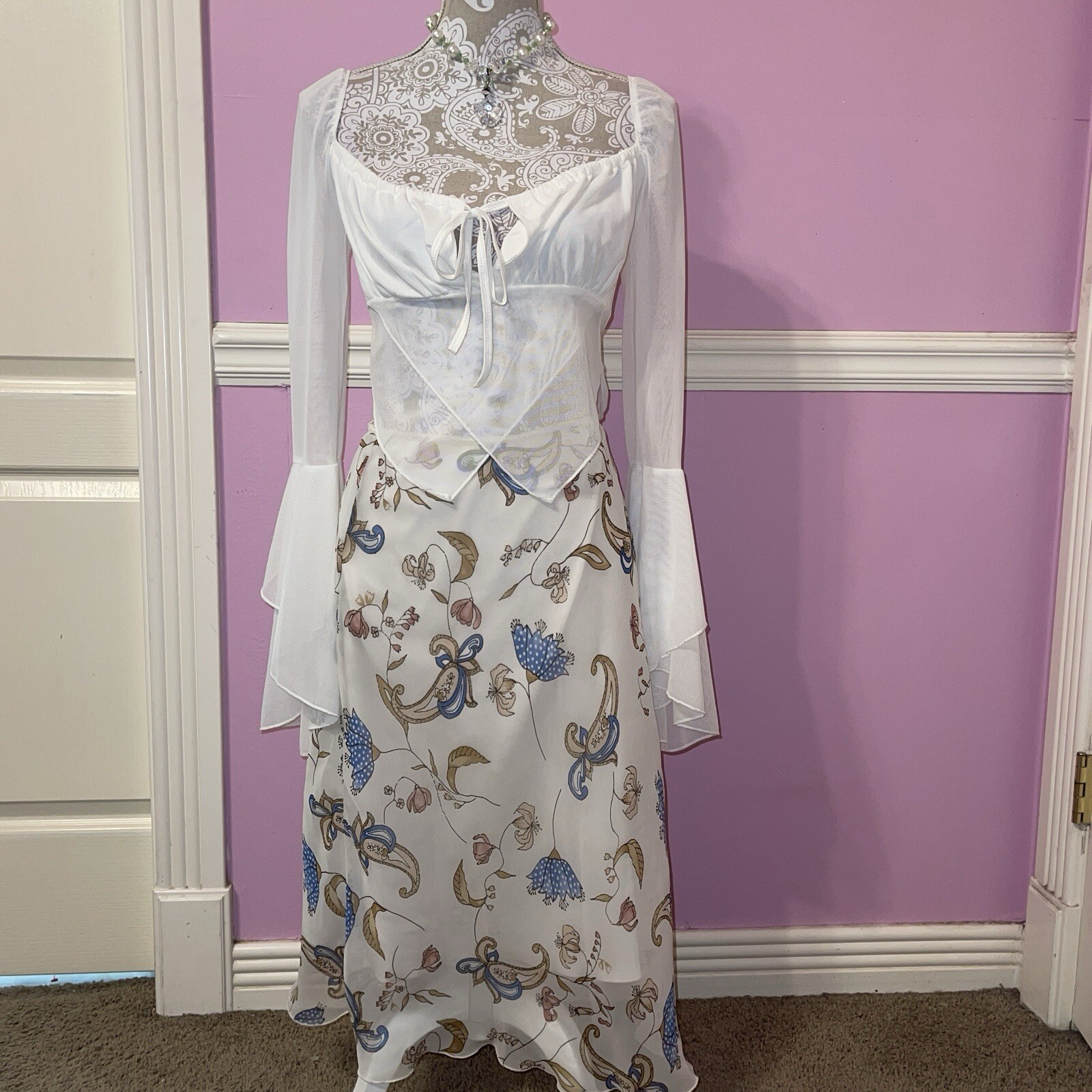 Vintage 90s y2k fairy maxi skirt fairycore cottage renaissance paisley floral